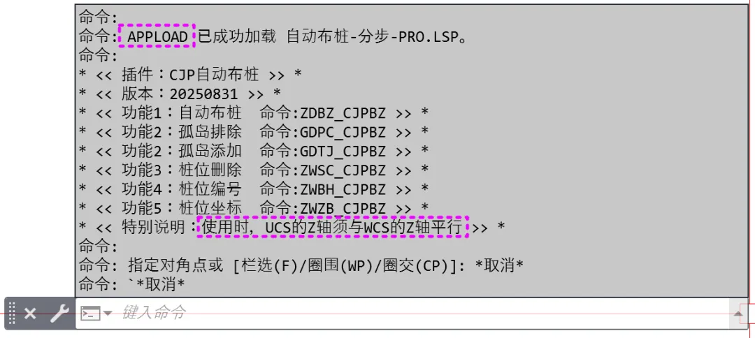 ➤ 加载插件。使用 APPLOAD 命令,选中插件,加载即可;插件会弹出使用提示如图。