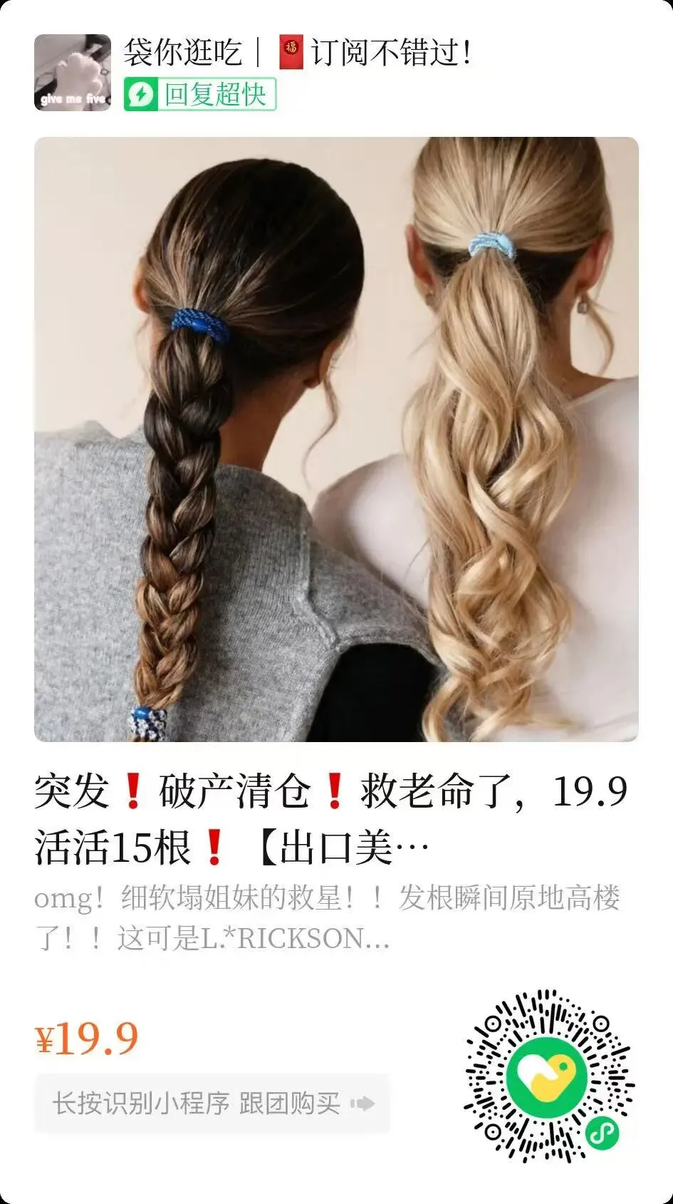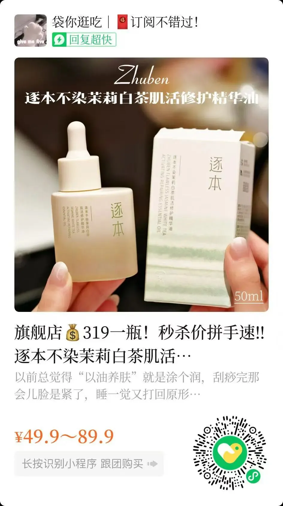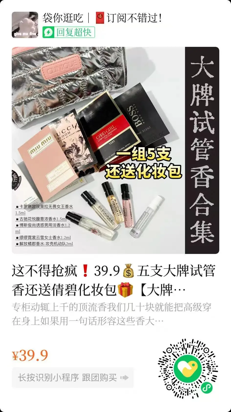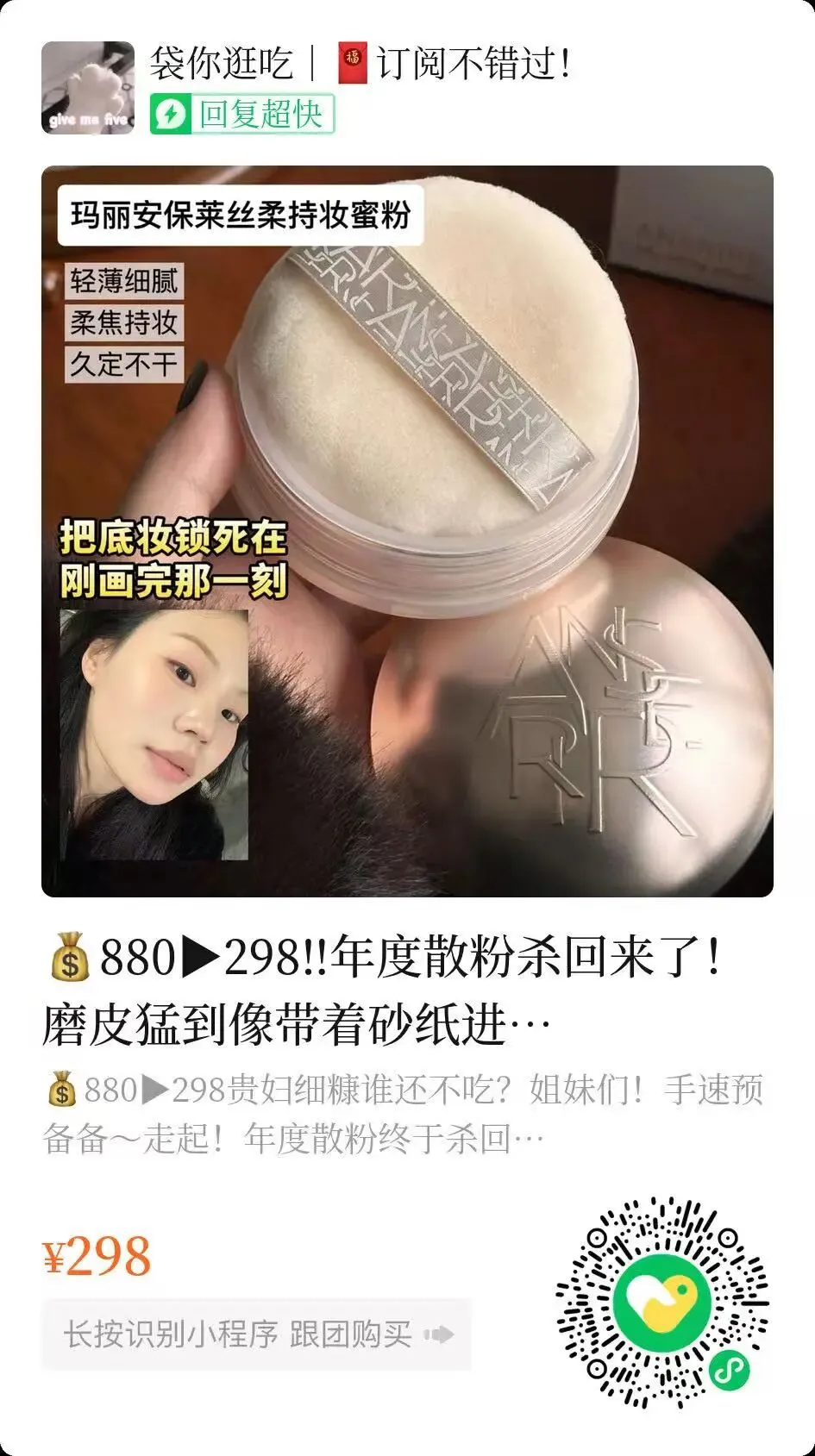 长按识别小程序即可下单,直接团价无需改价!
