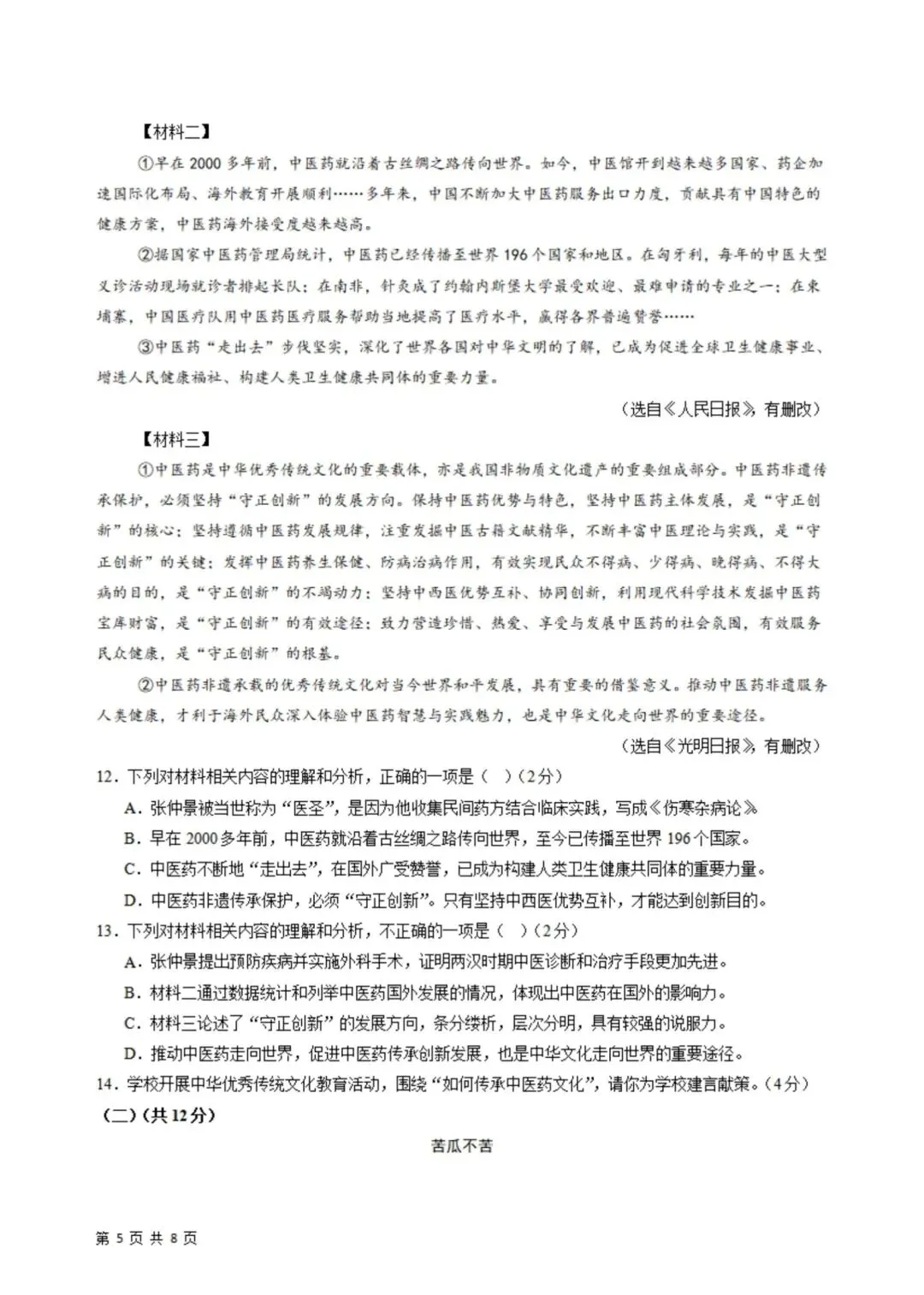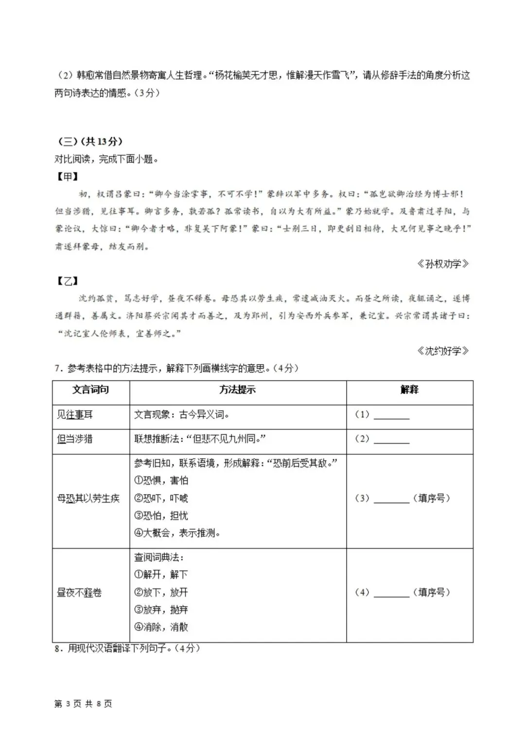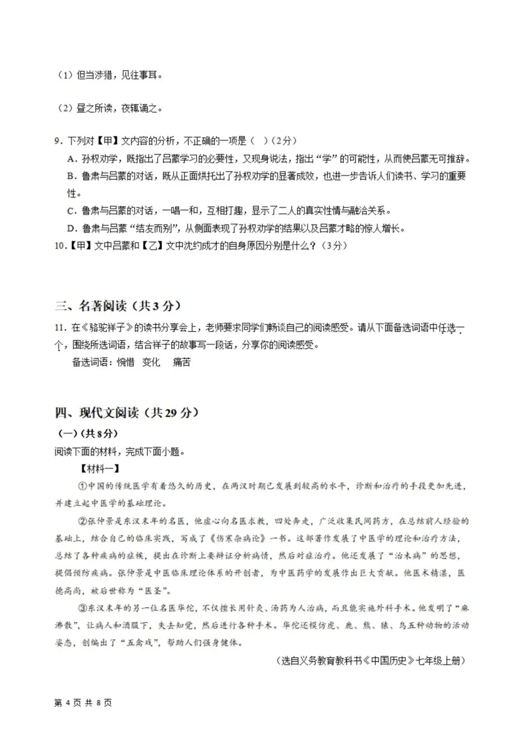 2026年春新版七年级下册人教部编版语文第一次月考试卷基础过关卷(3月学情自测卷),完整电子版含答案可打印