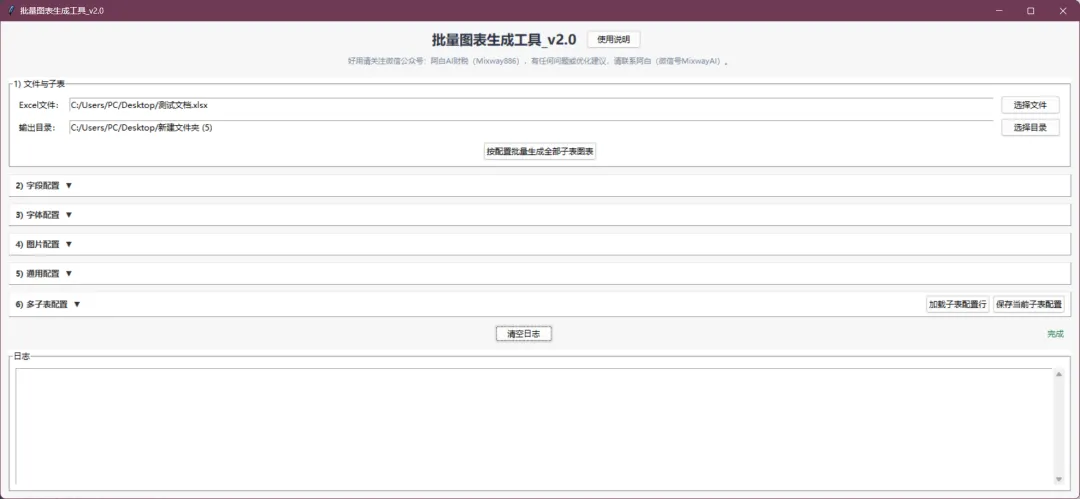 你只需要准备好数据底稿,选择Excel文件(xlsx格式)、保证每个表的第一行为标题行,选择输出目录,然后点击生成按钮,系统就会把所有子表对应的图表一次性生成出来。