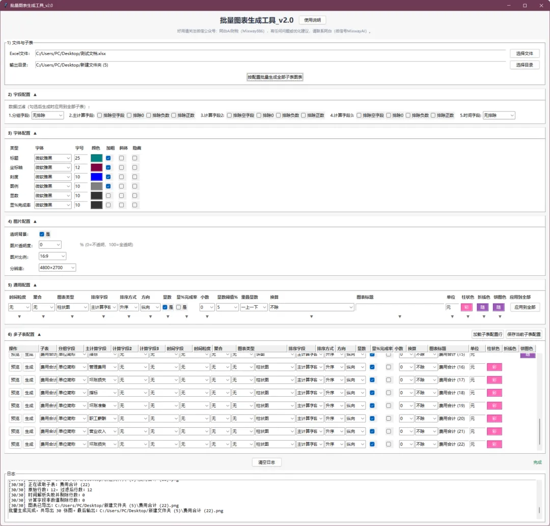 这是整个工具最核心的功能,批量生成30张图表轻轻松松~