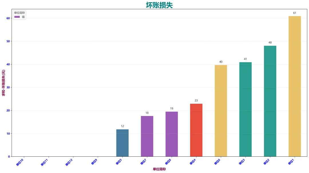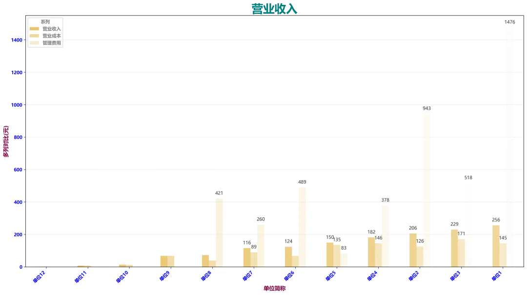 柱状图(条形图):适合做部门数据对比、费用对比、指标统计