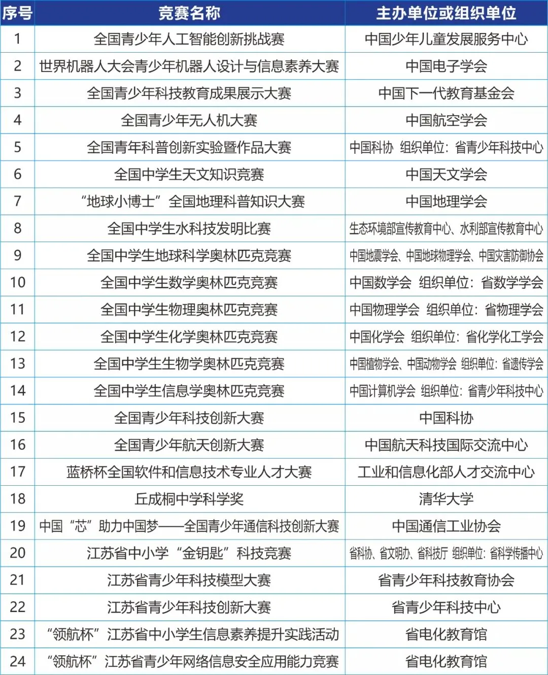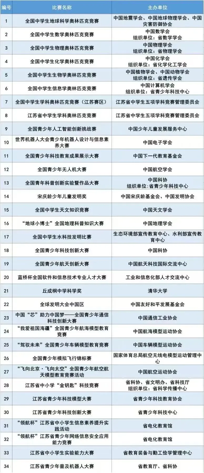 自然科学素养类竞赛名单