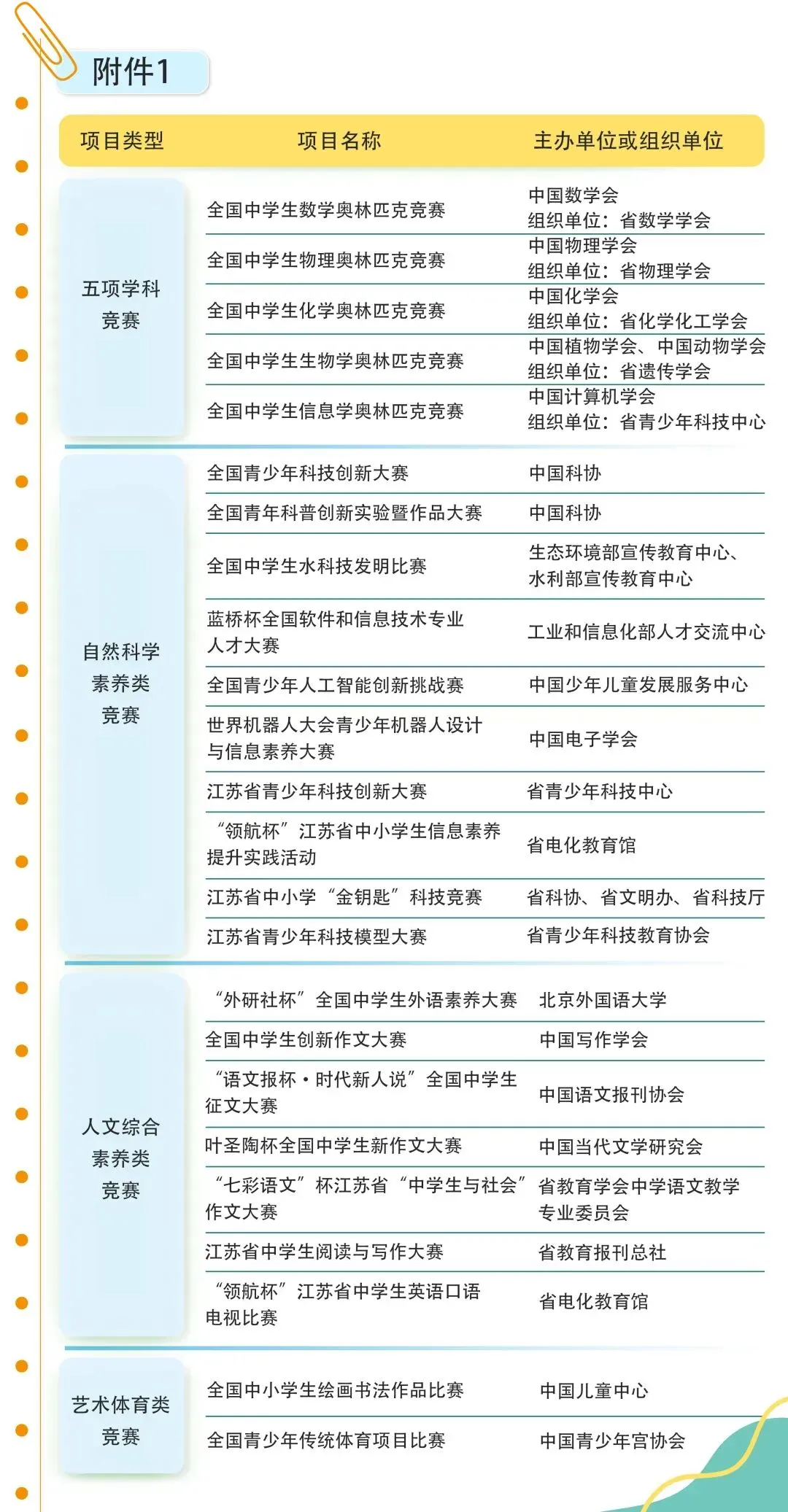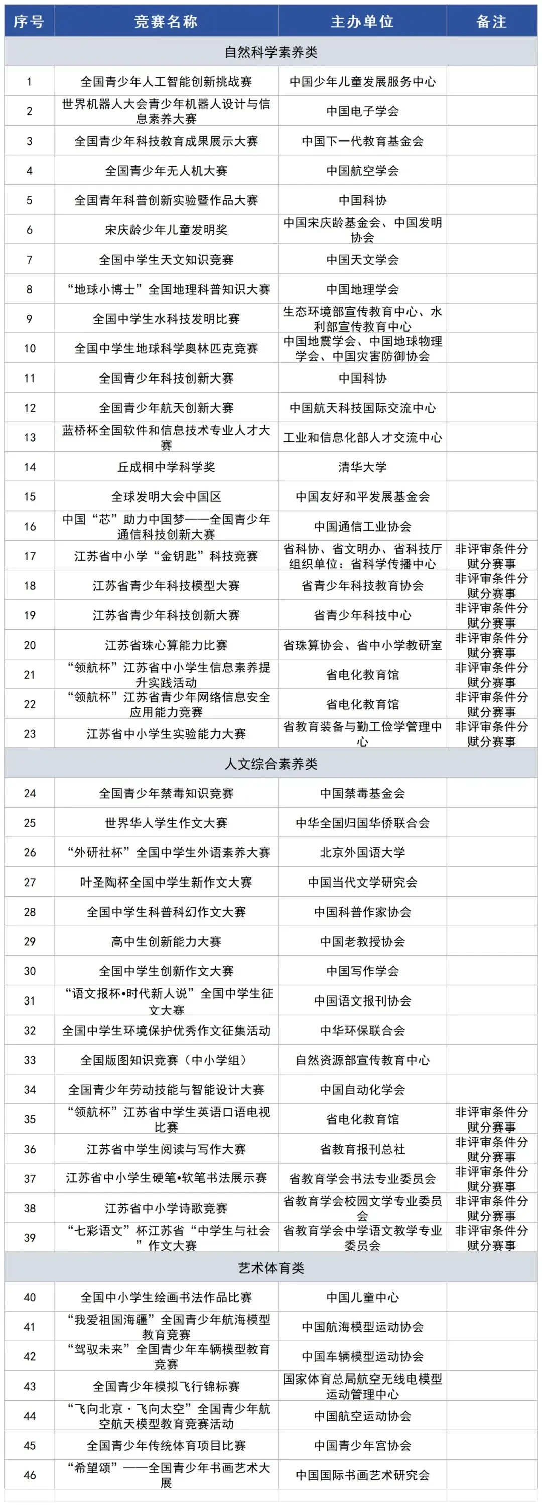 自然科学素养竞赛名单