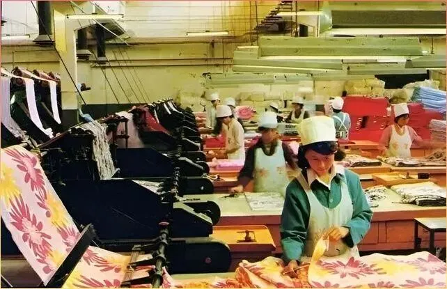 瞧瞧这.生产车.间里的场景.,一排排女.工正在赶制花布被面,那时候能有一床这.样的花布被子,可是姑娘出嫁必备的嫁妆呢.!记得那会儿,家家户户都盼着供销社来新货,尤.其.是这种大花图案的布料,往往一上架就被抢.购一空。现在的.年轻人可能觉.得.这花色土气,可在当年,这可是时髦货啊!