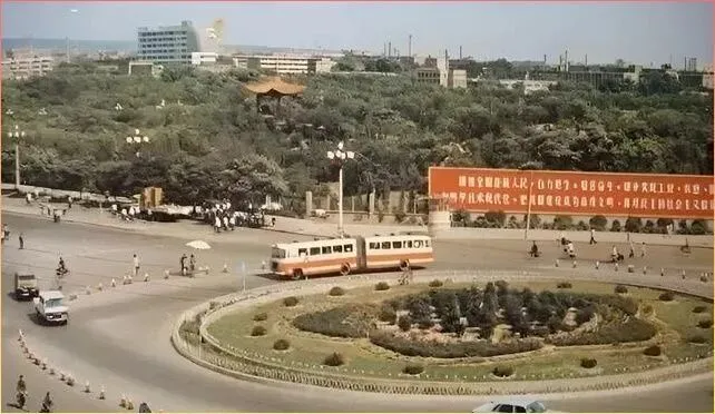 这个环岛路口.,老.太原人.一眼就能认出来吧!远处的红色标语横幅,路上的大.辫.子无轨电车,还有那些骑着自行车的人们,构成了80年代太原最典型.的城市画面。那时候出门,要么骑.自行车,要么就挤公.交,简.单却也自在。