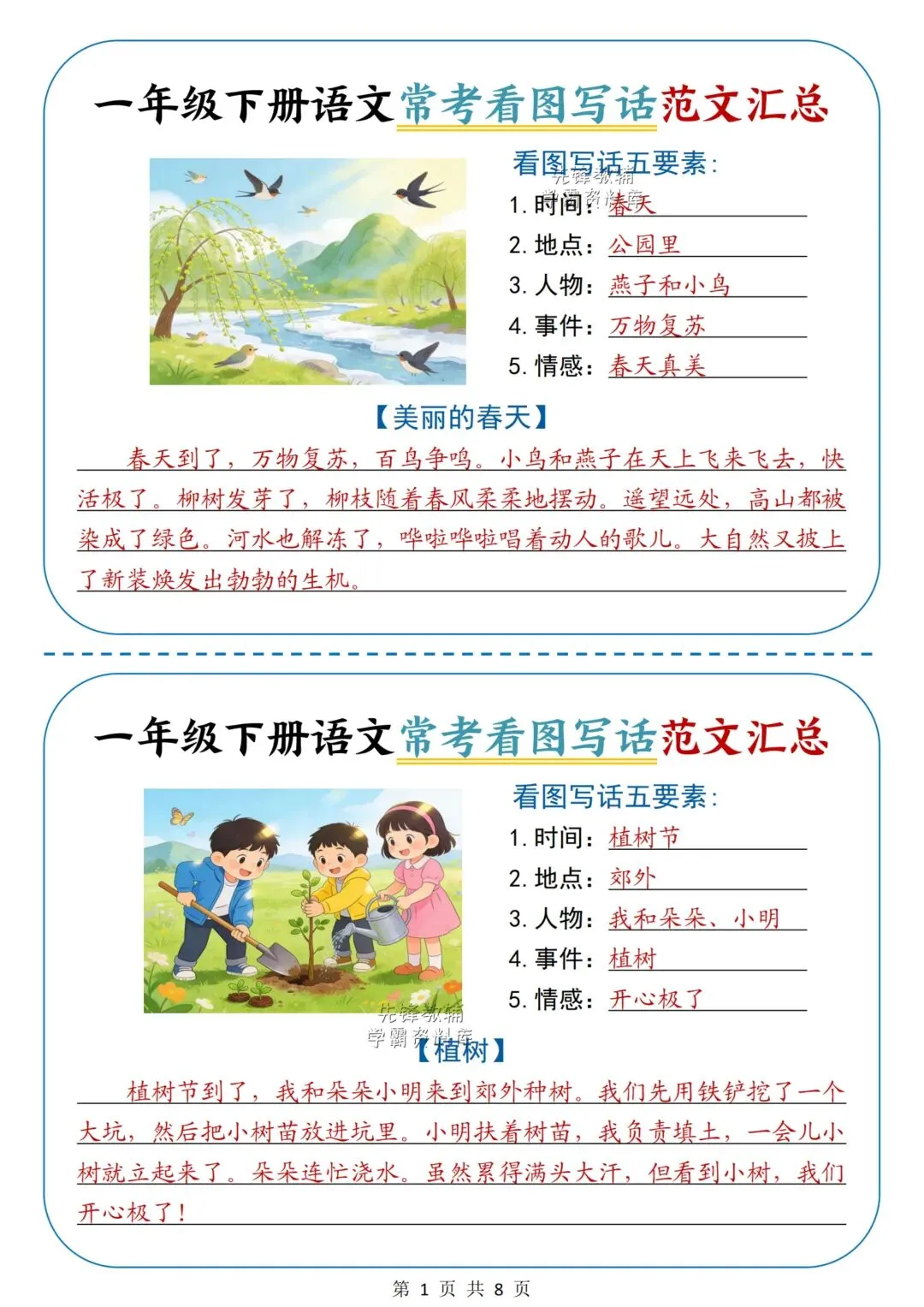 今日分享2026年最新版《一年级语文下册看图写话》电子版可打印。这份资料很全面,孩子每日只需花20分钟即可完成,学习更轻松,需要的家长赶紧给孩子打印一份学习吧。