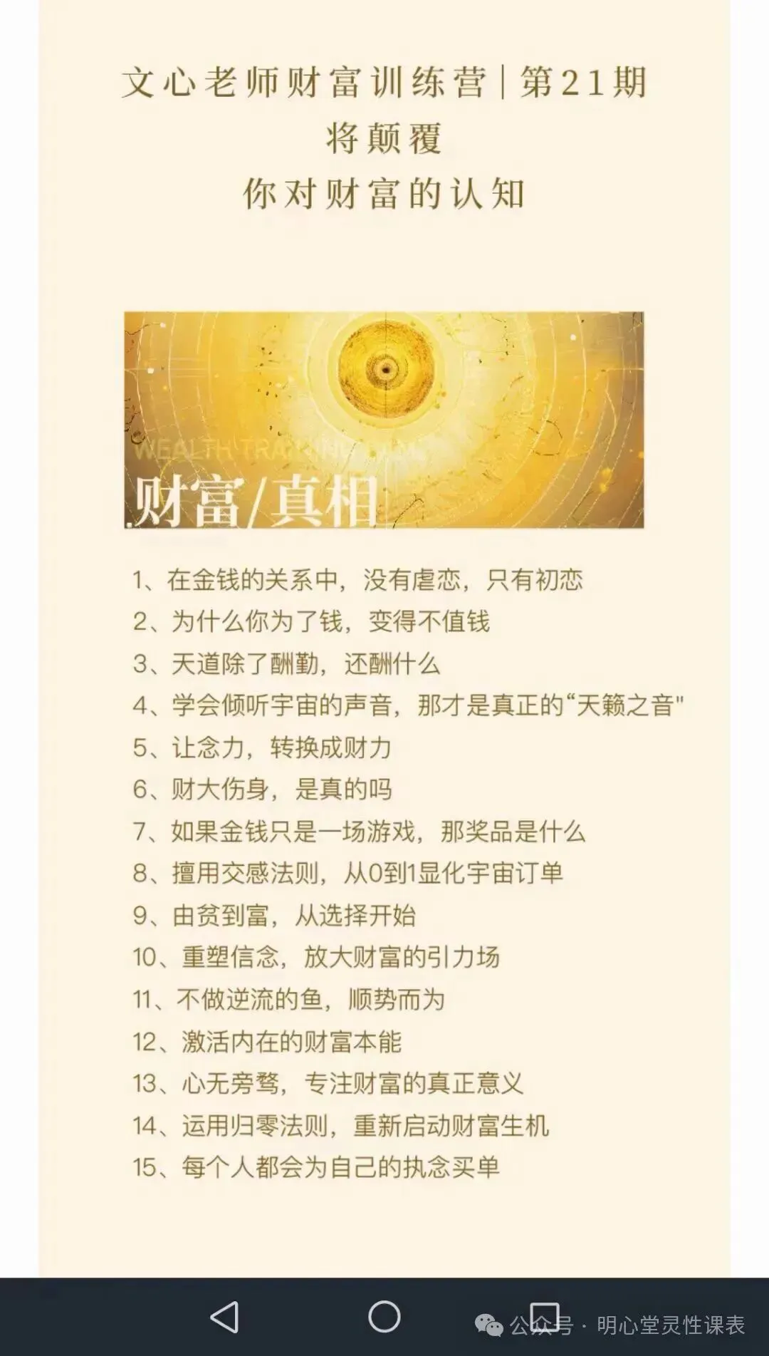 些你没有听过的财富训练营,带你打通金钱能量【绝版资料】