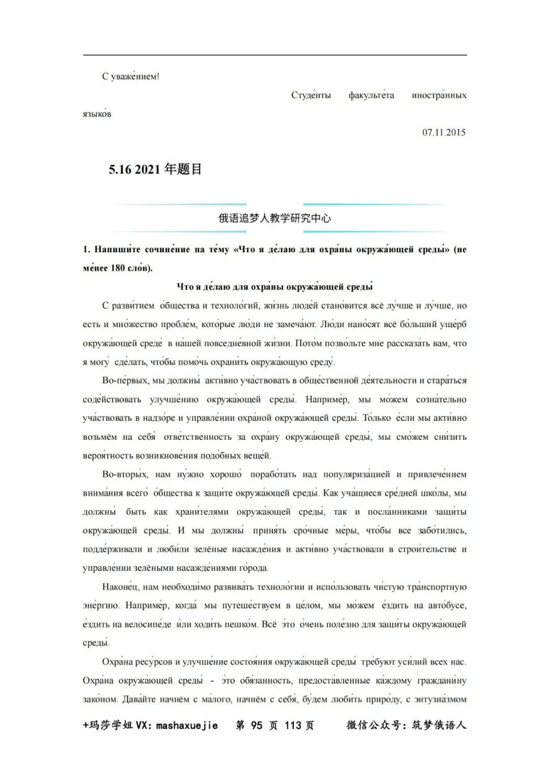 转发朋友圈,备注如下文字:“助力考级,请微信关注【俄语追梦人】公众号”。