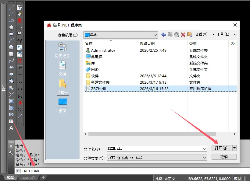 在弹出的对话框中选择并加载 ZBZH.DLL 文件。