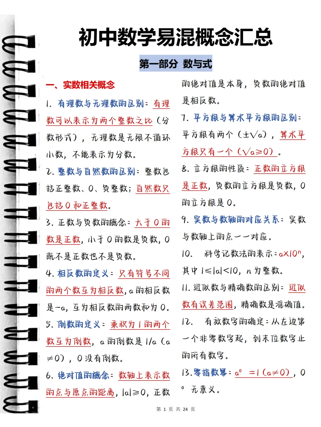 中考必背【初中数学易混概念汇总】,可打印 快收藏