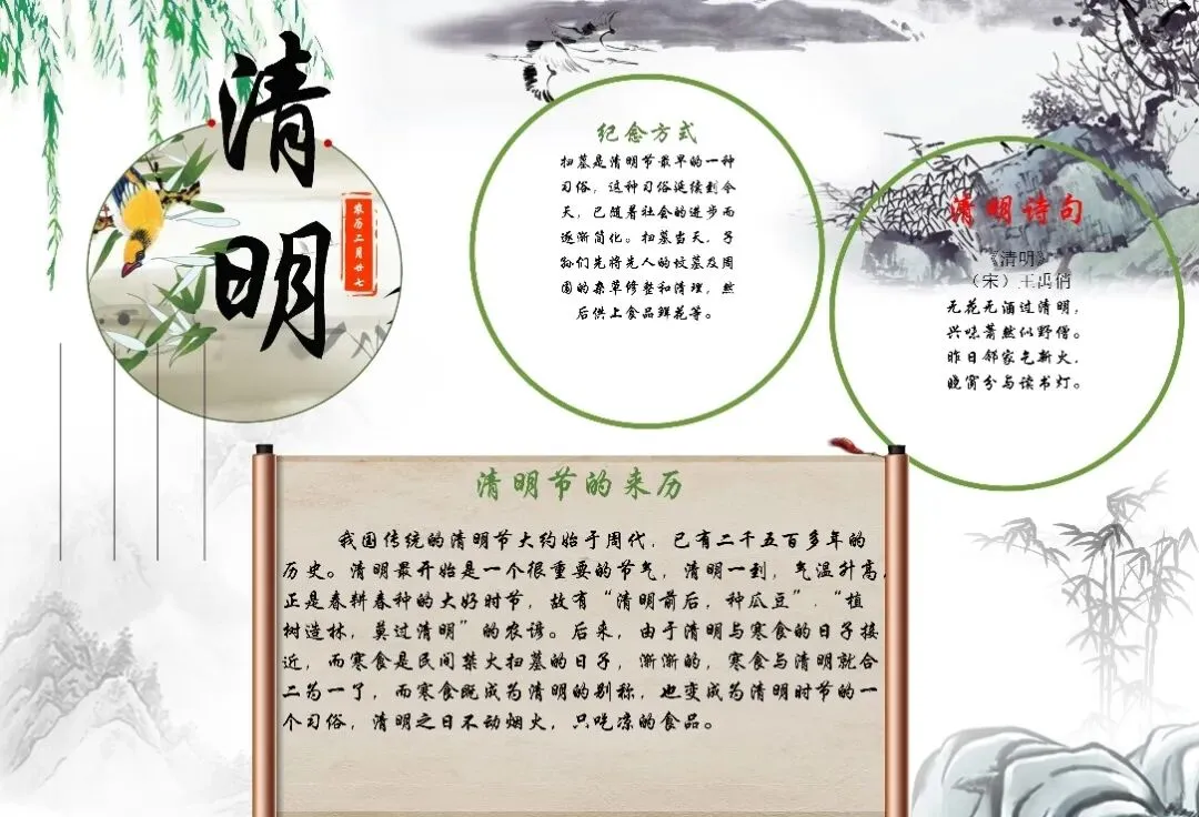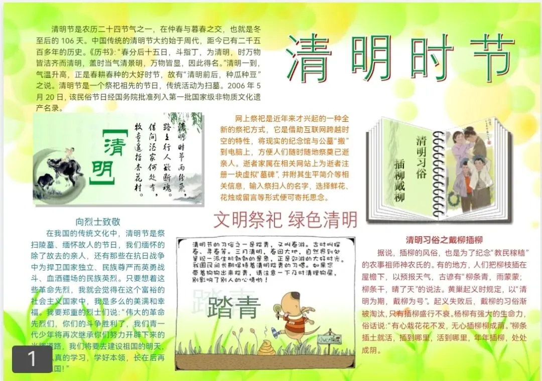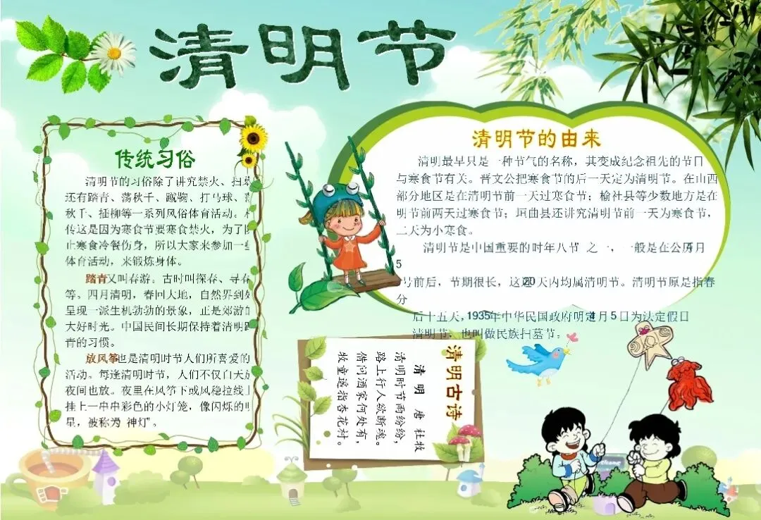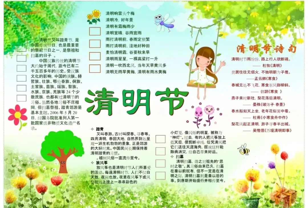 清明手抄报缺素材?线稿模板+文字素材全打包!有清明故事、习俗、诗词、标语,孩子照着填就能交作业,家长省心,孩子省力。