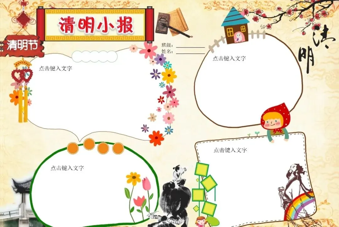 清明节手抄报模板+空白线稿+文字素材(可打印)