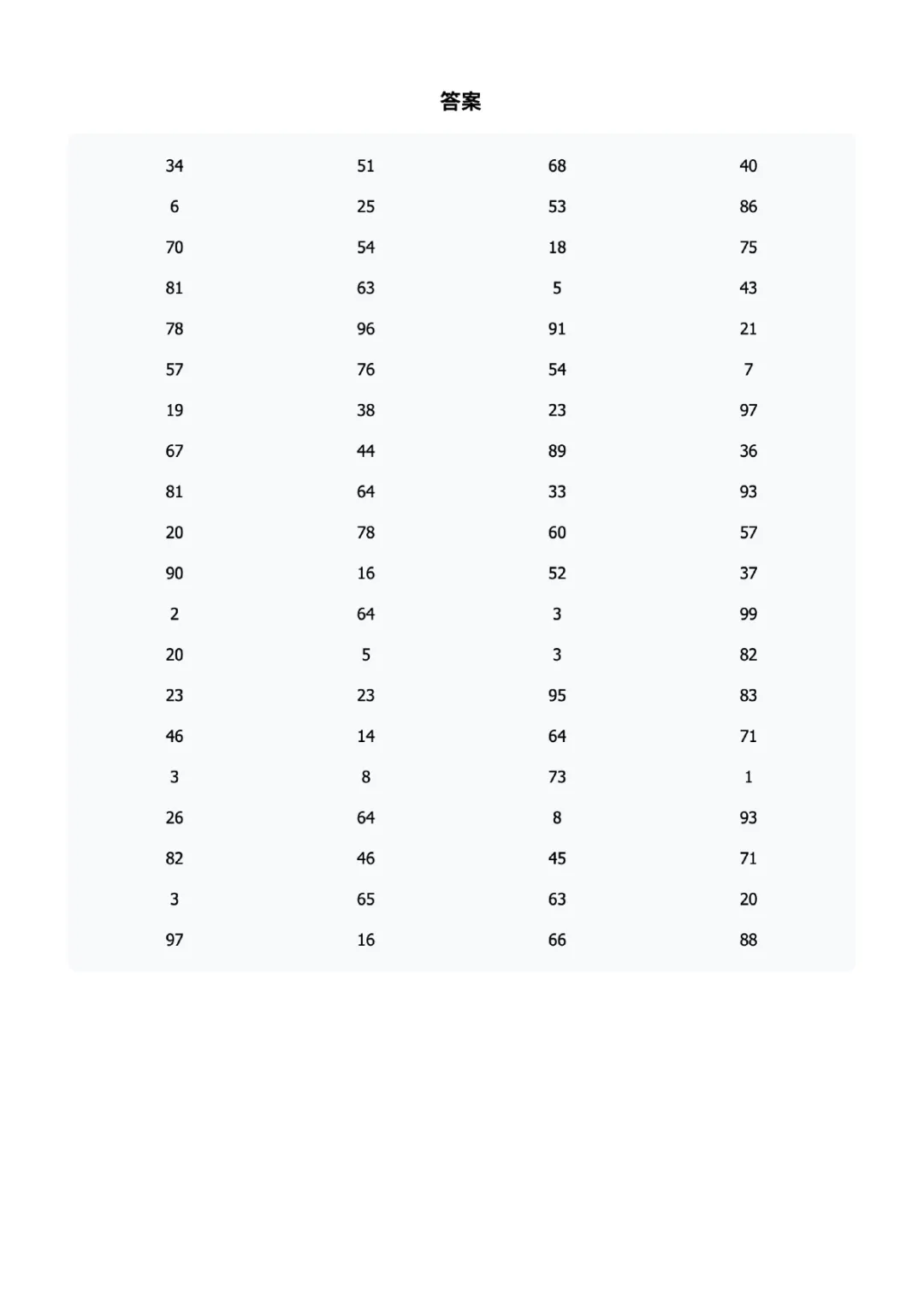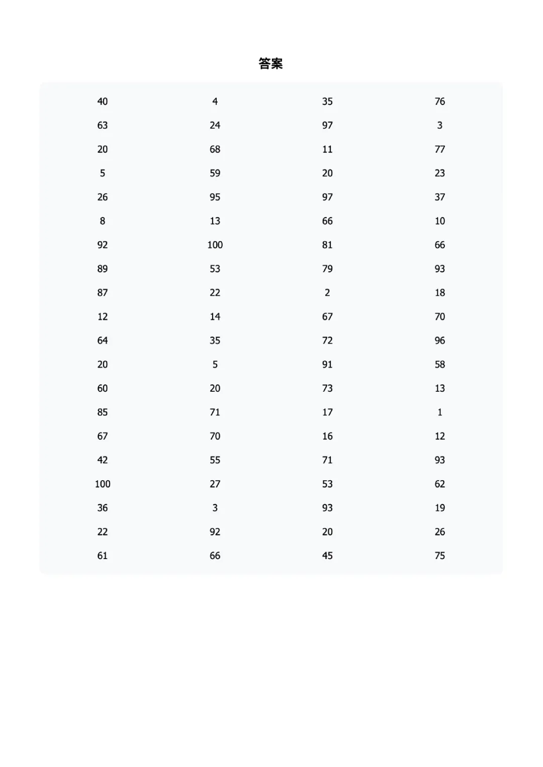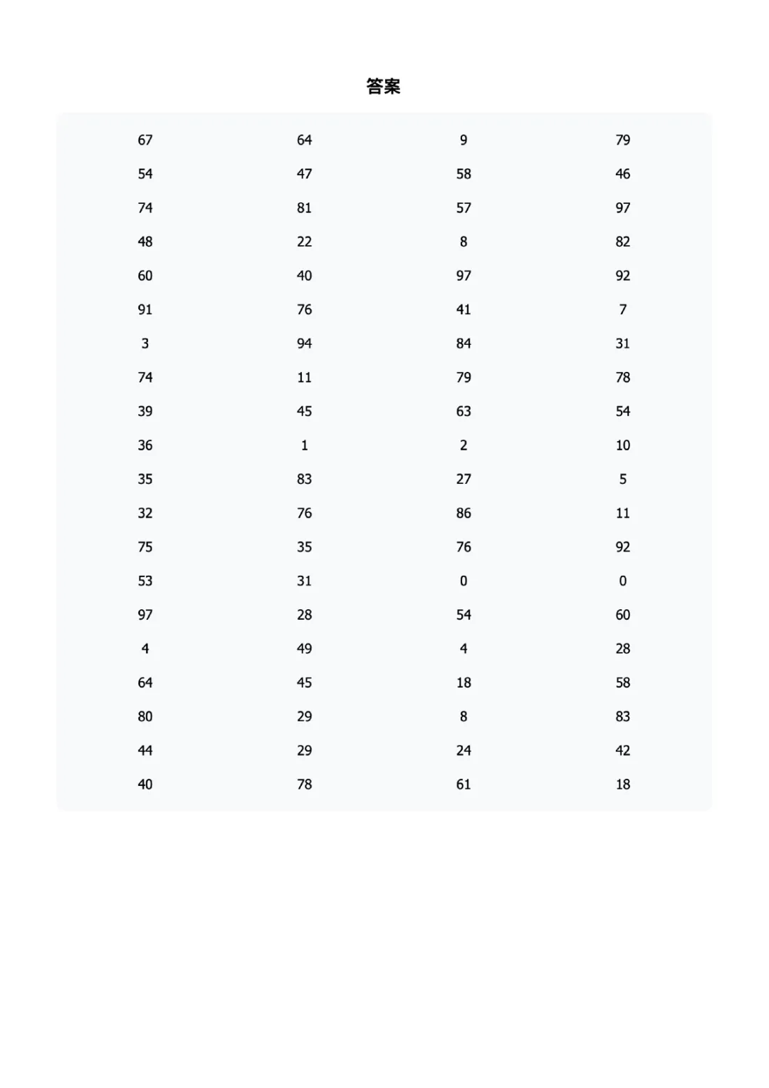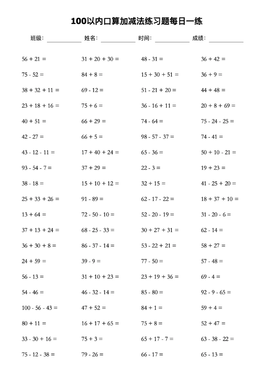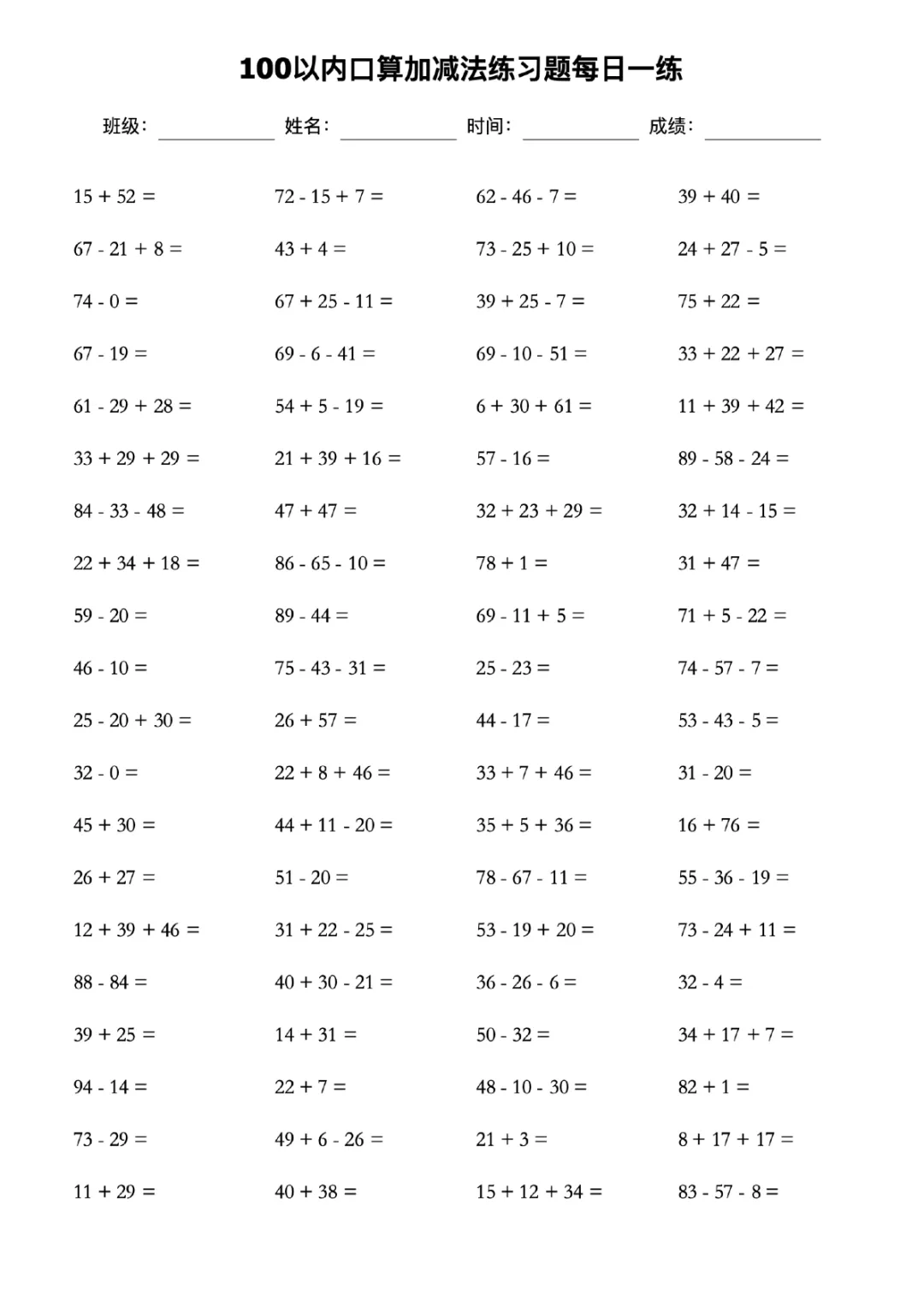 一年级100以内加减法练习题60页可打印电子版