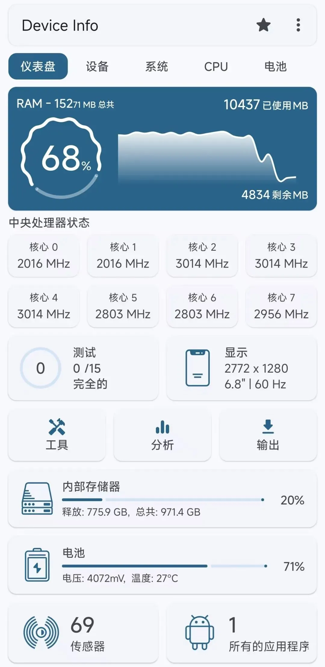 DeviceInfo 一款设备信息检测与硬件监控工具,说白了,你买手机或二手手机都可以用它来查看