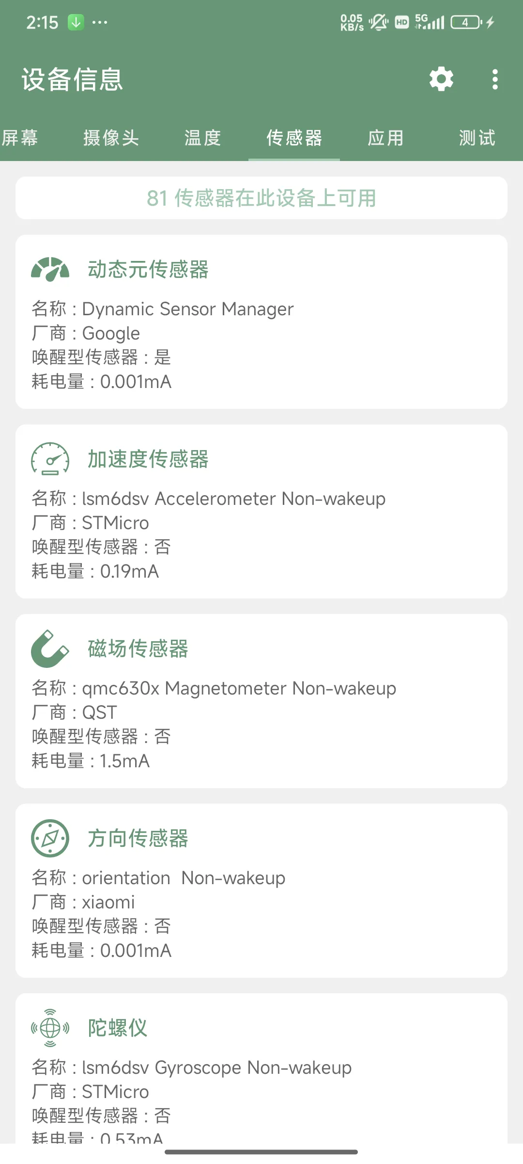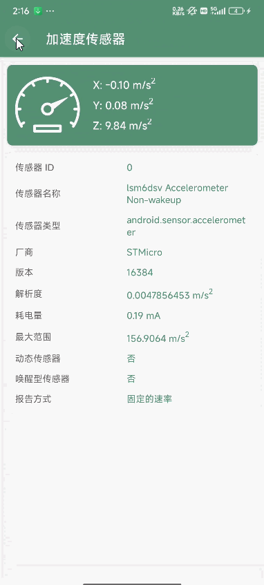传感器相关的通过测试可以看到相关的结果