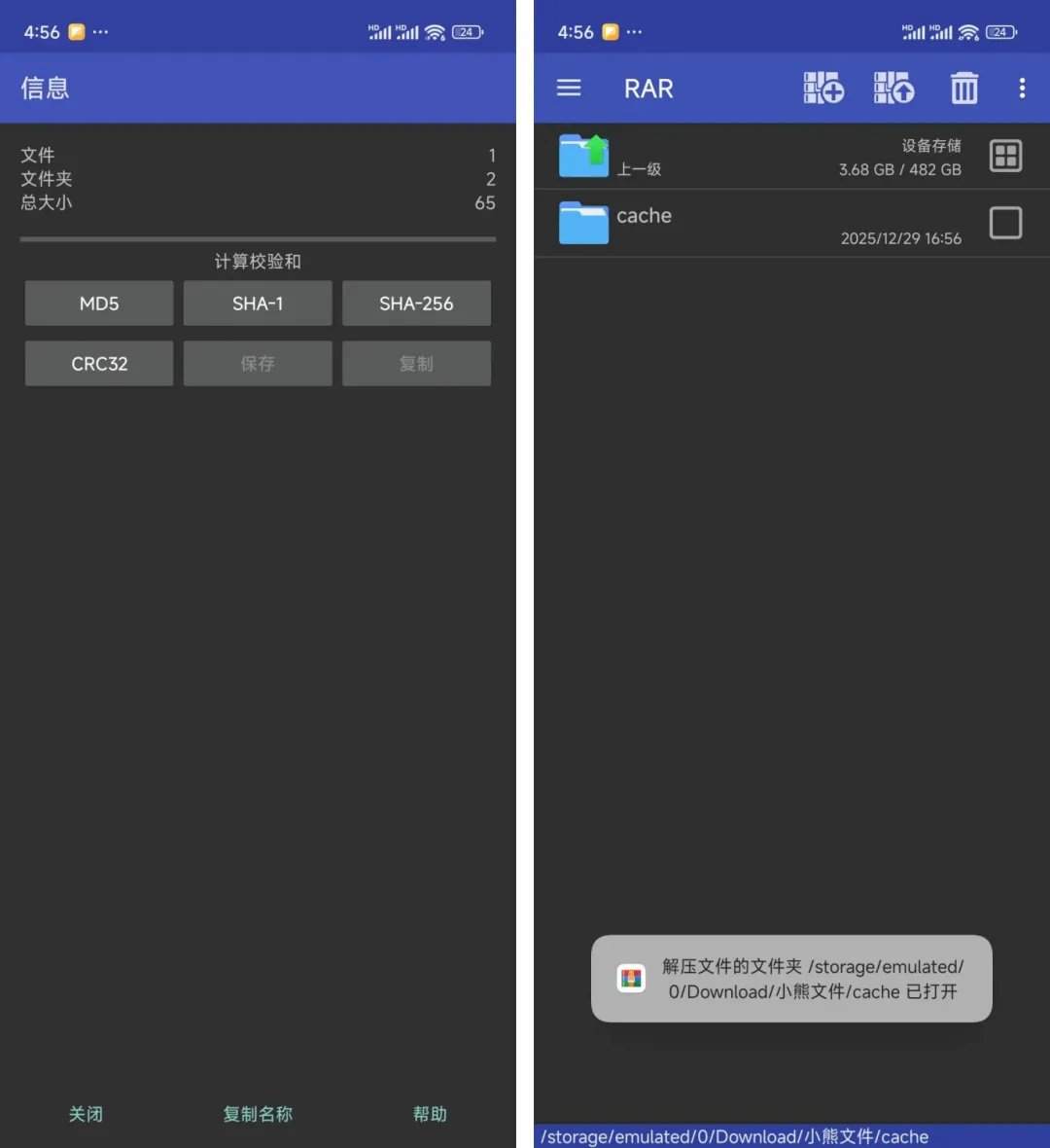 上周我收到一个同事发来的大型项目资料包,还是带密码的RAR5格式,本来以为在手机上解压会很慢,结果用这款软件,输入密码后很快就解压完成了。