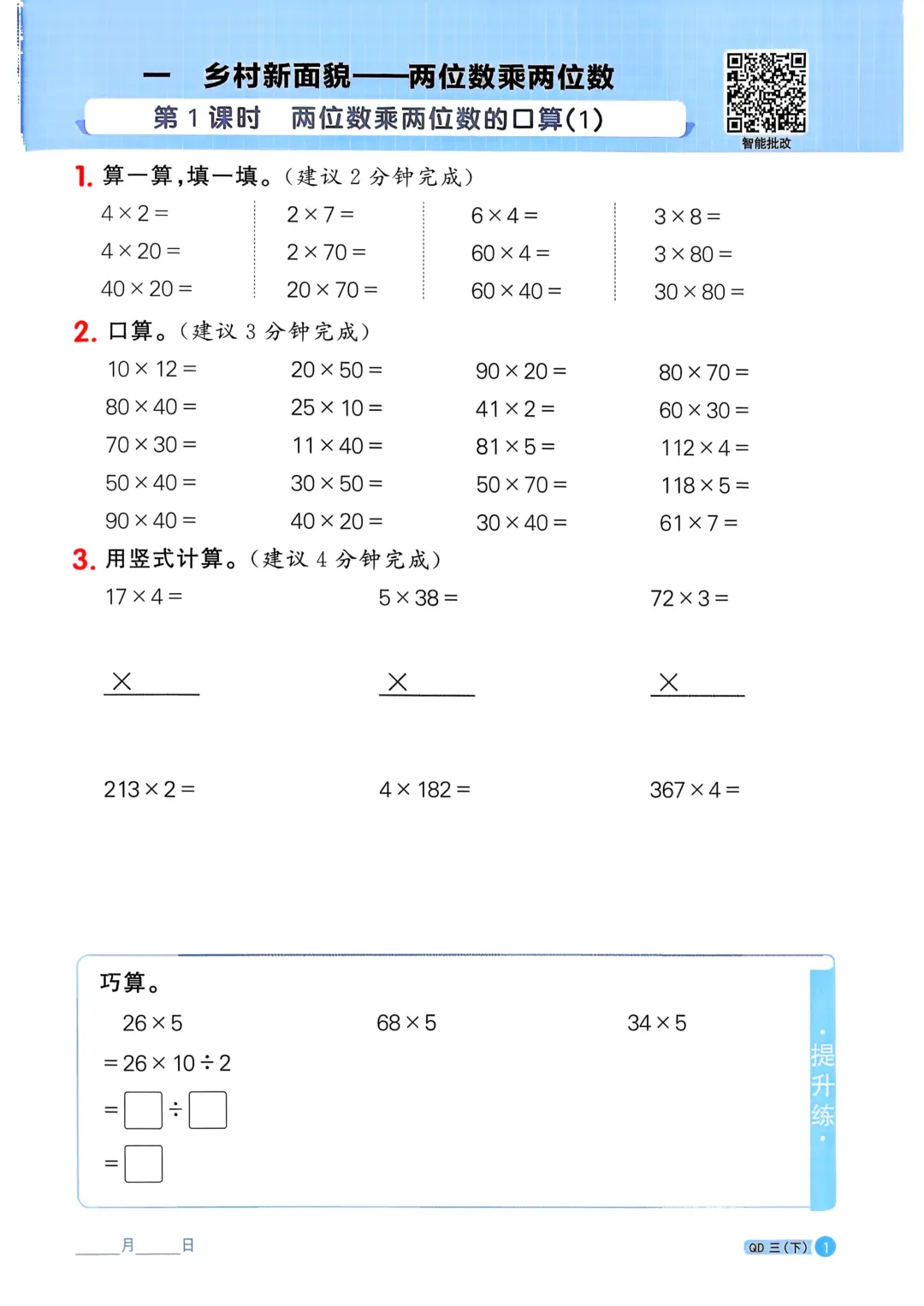【资源分享】26春三年级数学下册青岛版63制计算小达人 可下载可打印