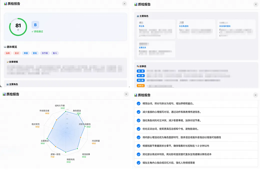 多维度评分系统:从结构完整性、内容一致性、原著还原度、节奏控制等多个维度进行自动化评分; -