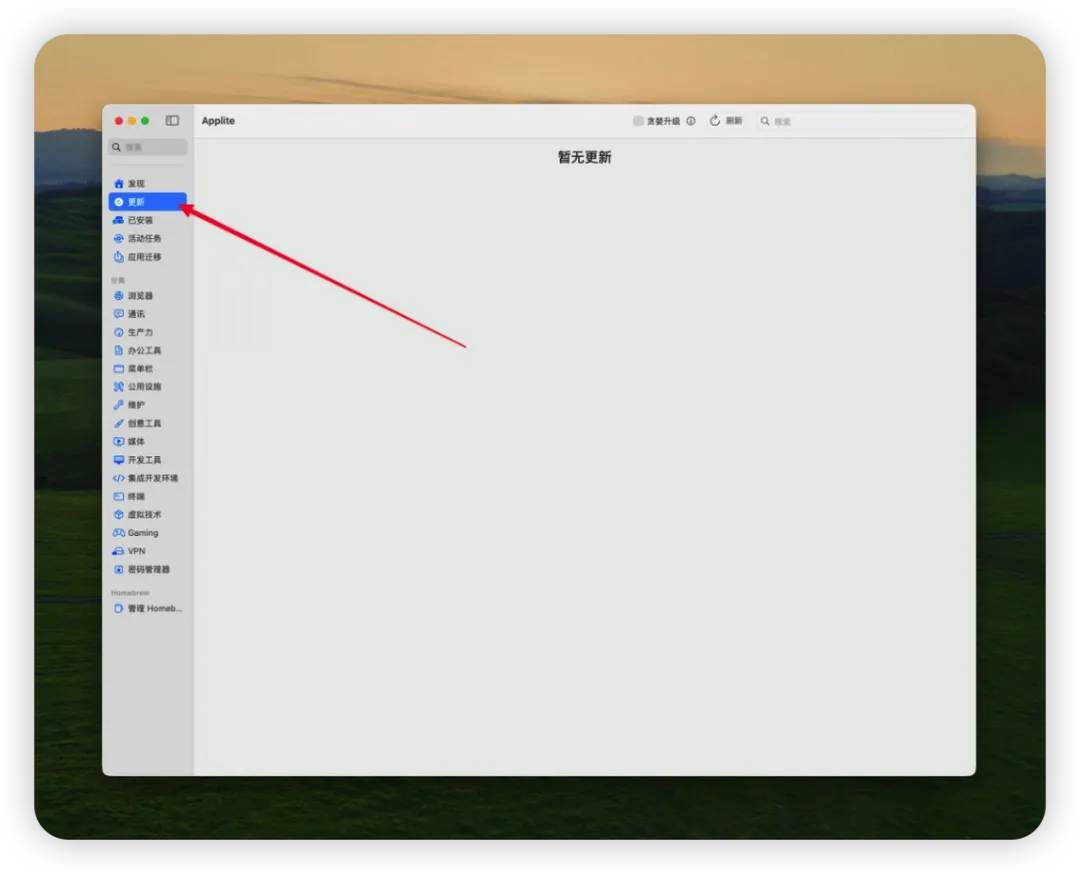 ⚠️ 注意:只有通过 Homebrew(包括 Applite)安装的应用才会出现在这里。你手动下载 DMG 装的应用不会显示。
