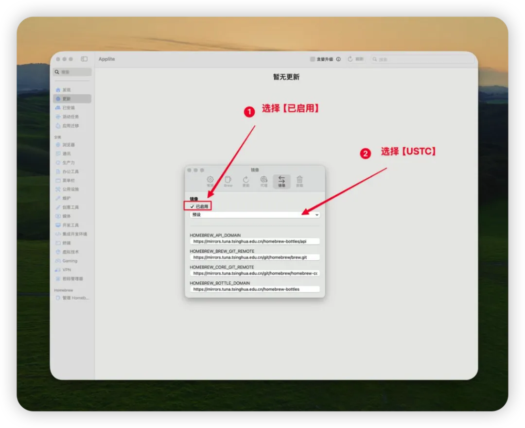 好消息是 Applite 直接内置了镜像配置,不用碰命令行。