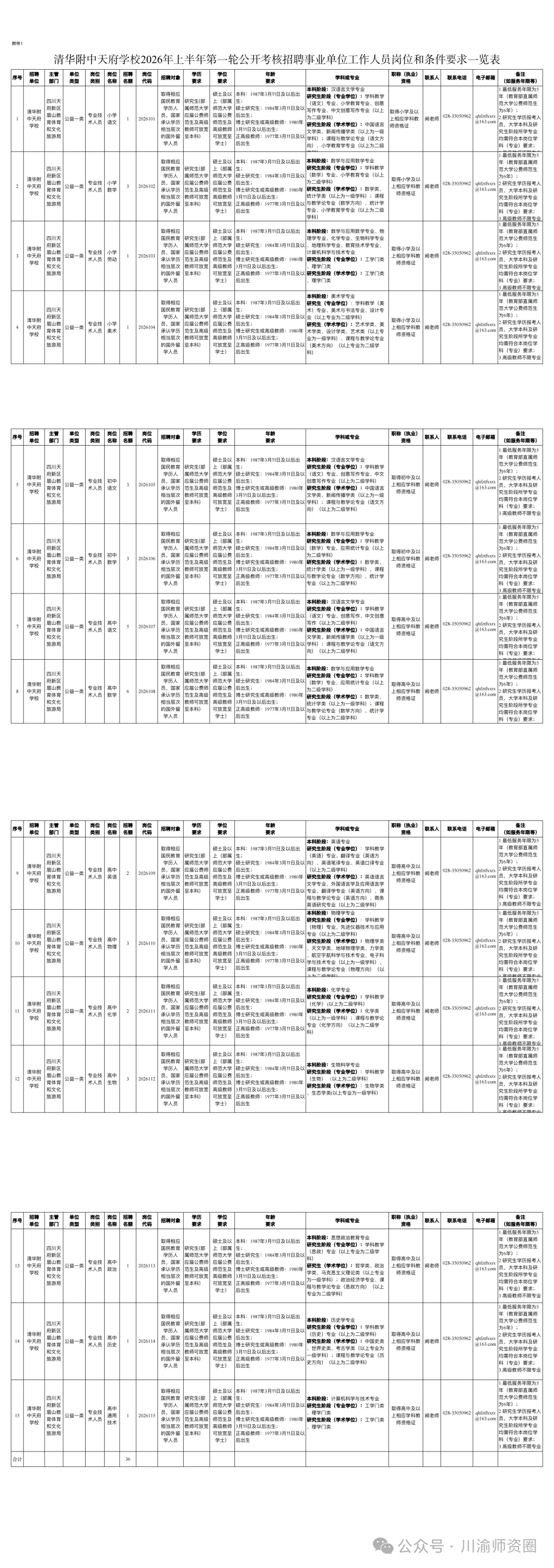 本次招聘为编制内招聘。具体招聘岗位及名额详见《清华附中天府学校2026年上半年第一轮公开考核招聘事业单位工作人员岗位和条件要求一览表》(以下简称《岗位表》。