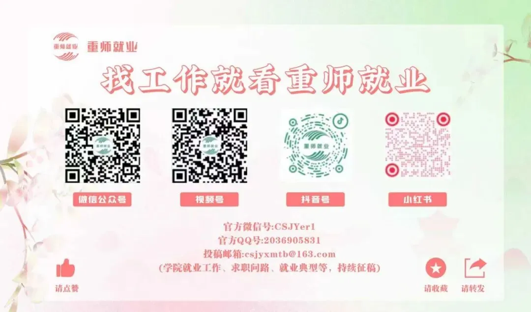 免责声明:重师就业微信公众号系信息发布平台,仅提供信息存储空间服务,本平台相关内容由用人单位提供,如涉及侵权,请联系我们删除。
