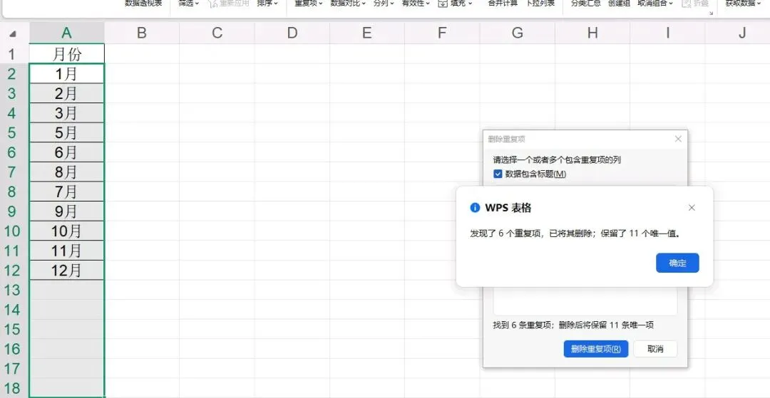 勾选【数据包含标题】→【确定】→【删除重复项】即可。