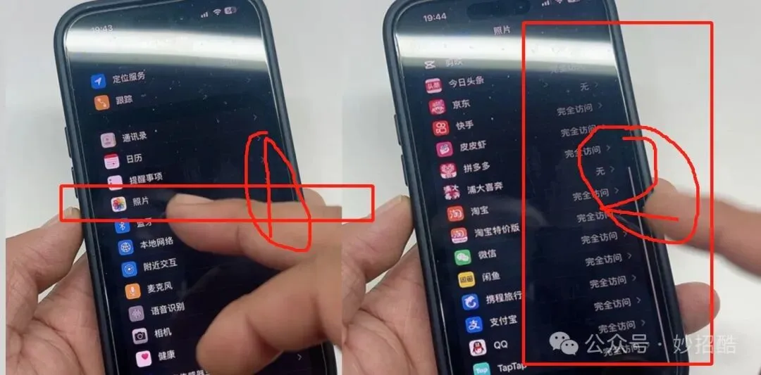 点进照片设置后,你会发现很多APP都是可以完全访问我们的相册。