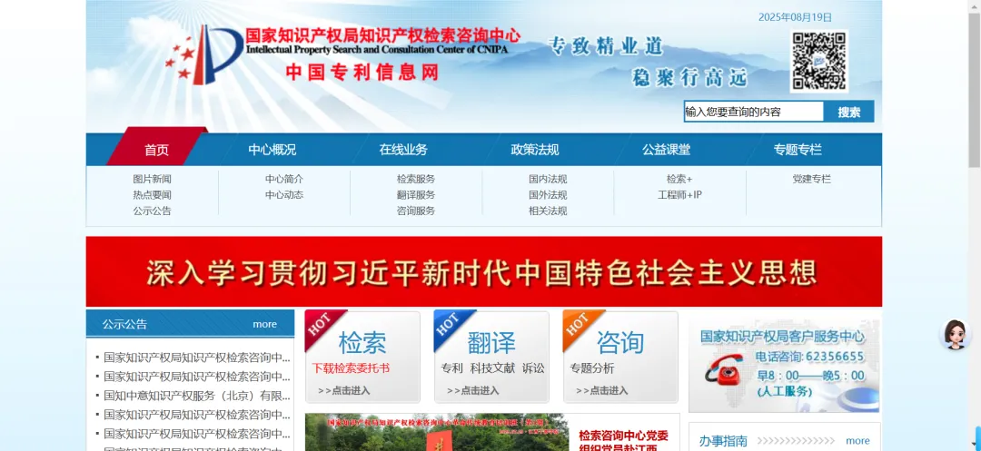 网站上的“专利检索”,可以免费检索全部中国专利信息。