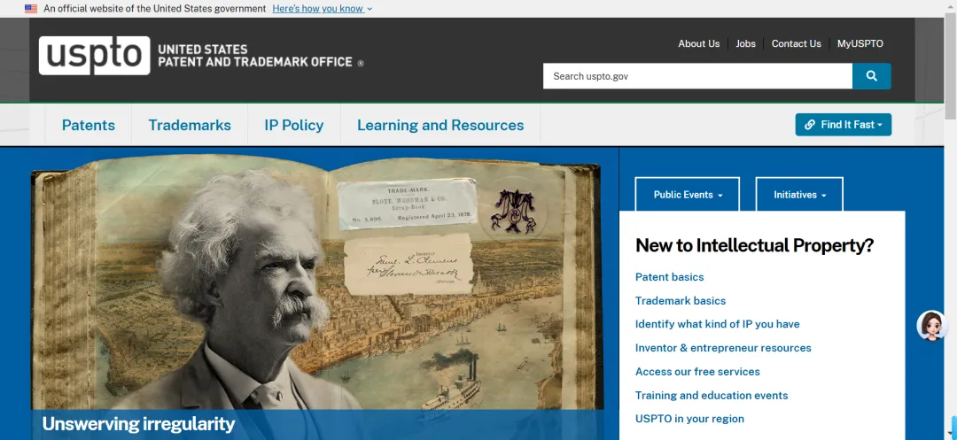网址:http://www.uspto.gov/美国专利商标局官网是由该机构创设的官方政府门户,旨在为社会公众提供全面的专利信息支持。除核心的专利数据检索功能外,网站还涵盖诸多相关资源,包括专利基础知识介绍、申请流程指引、专利文献公开机制以及美国专利分类系统等内容。