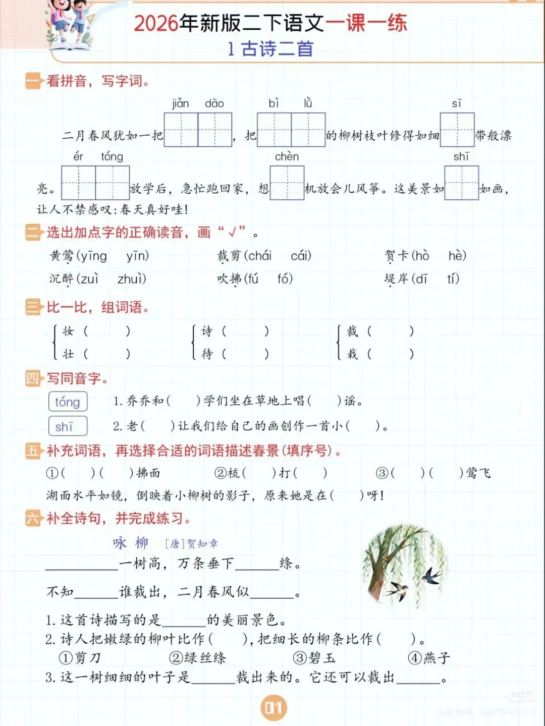 最近好多朋友在后台问,有没有适合二年级下学期语文的练习资料,最好是能自己在家打印的那种。