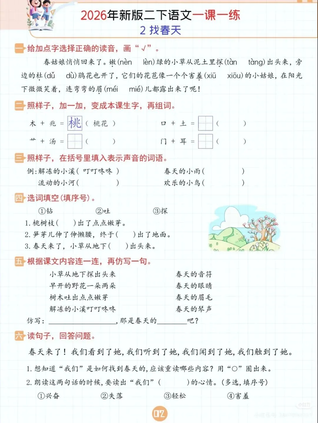 二年级语文辅导别发愁!这份超全一课一练电子版,我后悔没早点发现