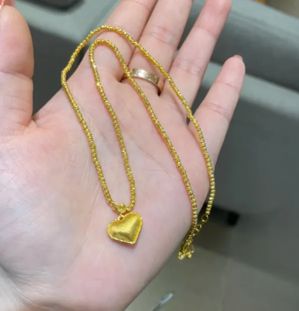 买的过程倒是挺日常的。我试了好几款,最开始被一条很夸张的足金项链吸引,克重炸裂,戴上即显脸小,但我抬头看看镜子里那条霸道总裁风的锁骨链,突然想起我通勤穿的都是白T牛仔,压不住场呀。柜姐见状马上递来一只素圈手镯,说这个克重刚好,日常不挑人,工费也比花样款低一点;我把玩半天,那种暖乎乎的金色,确实治愈。耳钉挑的是小金豆,克重轻,点一点亮,很干净,戴上像给脸颊打了颗柔光灯。我当天就戴着去和闺蜜喝咖啡,她第一句是“哟,最近发奖金了?”我笑场,说没有,发的是心情补丁。回家我妈看见手镯,摸了摸说“素圈耐看,别整那些乱七八糟的挂坠”,语气像在夸我终于长大了。结果第三天我切菜手忙脚乱,把手镯蹭到柜门,立刻心慌,赶紧取下收好,日常家务还是不敢太造。通勤搭配的话,白衬衫配素圈真的很提气色,光泽不刺眼,是那种离你一拳距离才看见的小体面;小金豆耳钉配棒球帽也不违和,周末买菜戴着它,摊主阿姨竟问我是不是新婚,哈哈我直接笑喷。