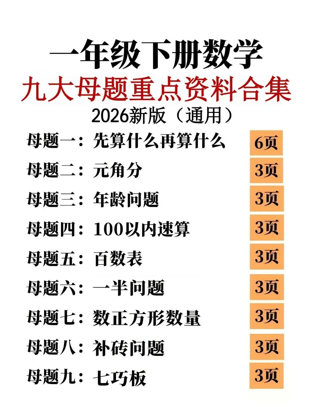 今日分享一年级下册数学重点母题,陪伴孩子学习不迷路~大家有什么需要的资料都可以加上我,v上联系我,公益分享~