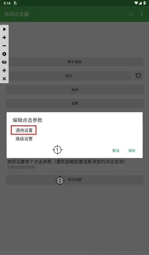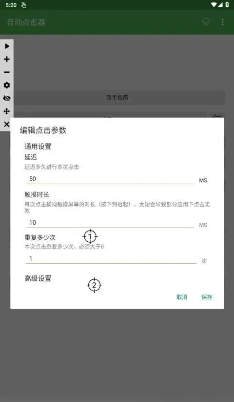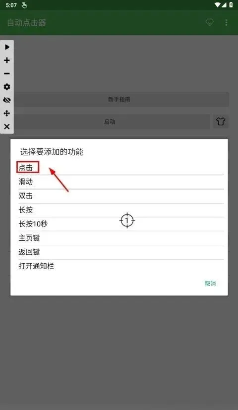 1、打开自动连点器,然后长按屏幕中间的位置点。