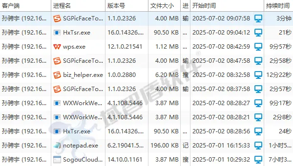 域智盾会详细记录员工每天使用了哪些软件(如微信、PS、CAD)、访问了哪些网站(包括具体URL),并生成可视化报表。管理者能清晰看到:谁在工作时间频繁刷短视频?哪个部门过度依赖非授权工具?这些数据不仅用于安全审计,也可优化IT资源分配。