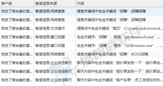 系统内置敏感词库和AI识别引擎,能自动扫描员工电脑中的文档、聊天记录、邮件草稿等,一旦发现“合同”“报价单”“源代码”等高风险内容出现在非受控区域(如个人网盘文件夹),立刻向管理员推送告警,实现从“被动响应”到“主动干预”。