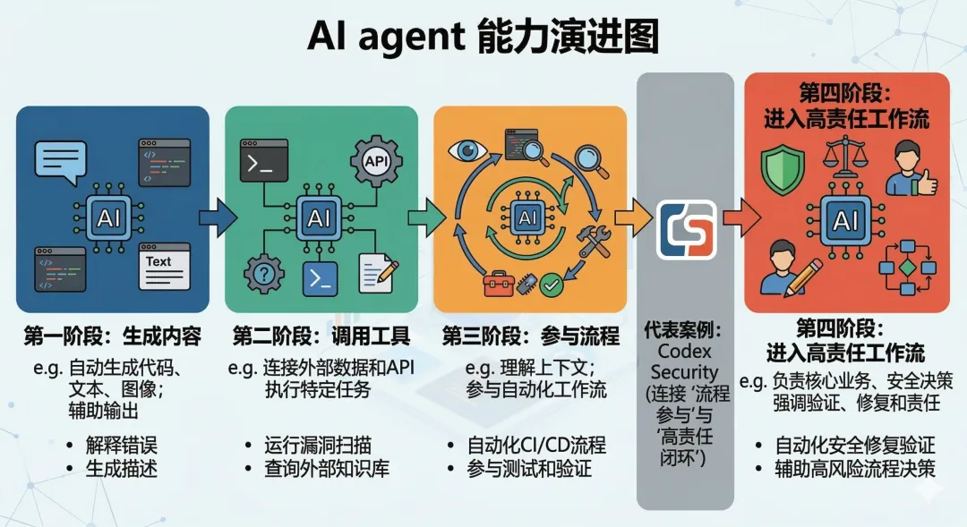 如果只看表面,Codex Security 仍然只是一个具体产品。但如果往上看一层,它更像是一个行业信号:AI agent 的目标,已经不只是帮人生成内容、调用工具,而是开始尝试进入那些本来由专业团队负责、且结果带有明确责任后果的流程。