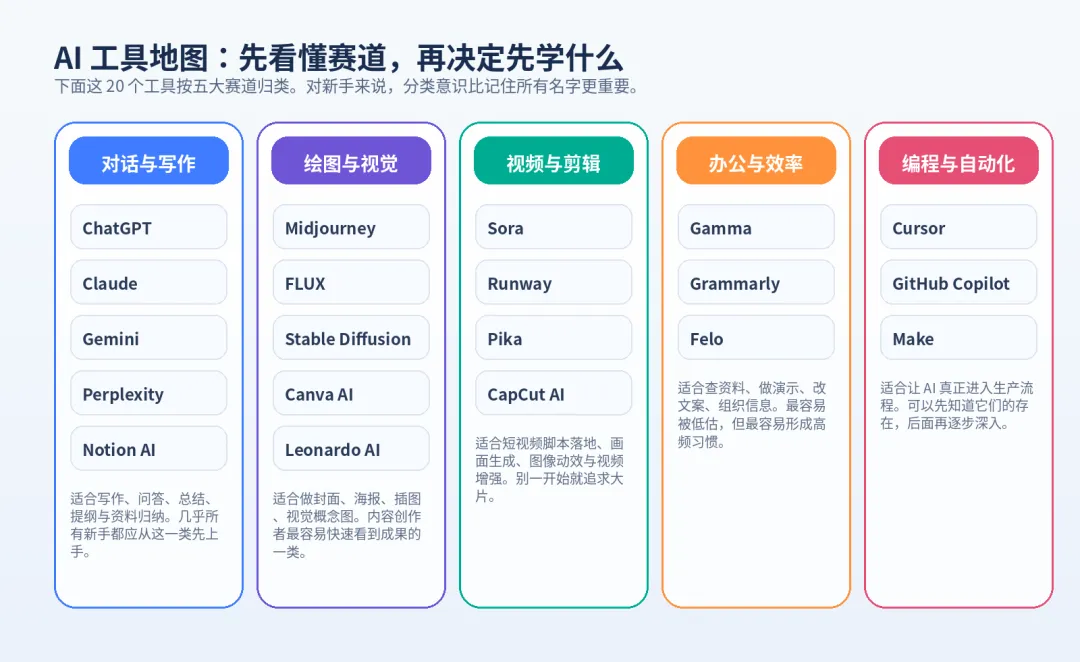 图 1AI 工具地图:先看懂赛道,再决定先学什么。