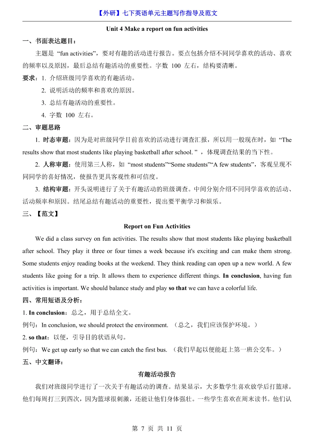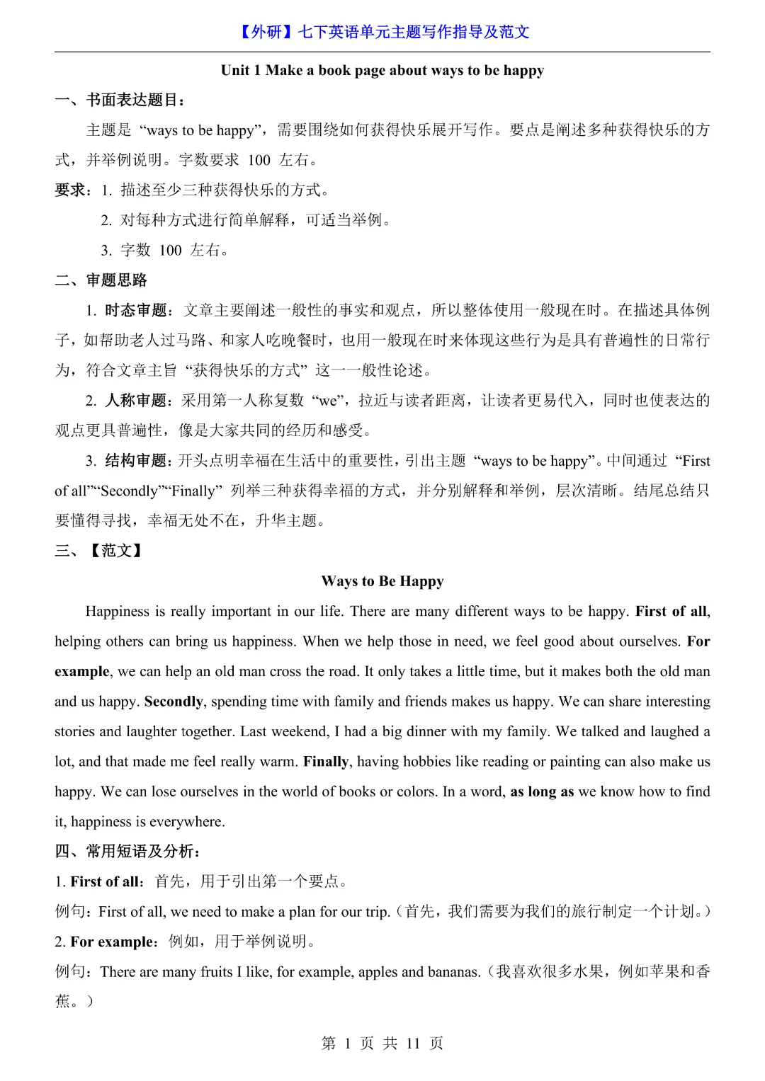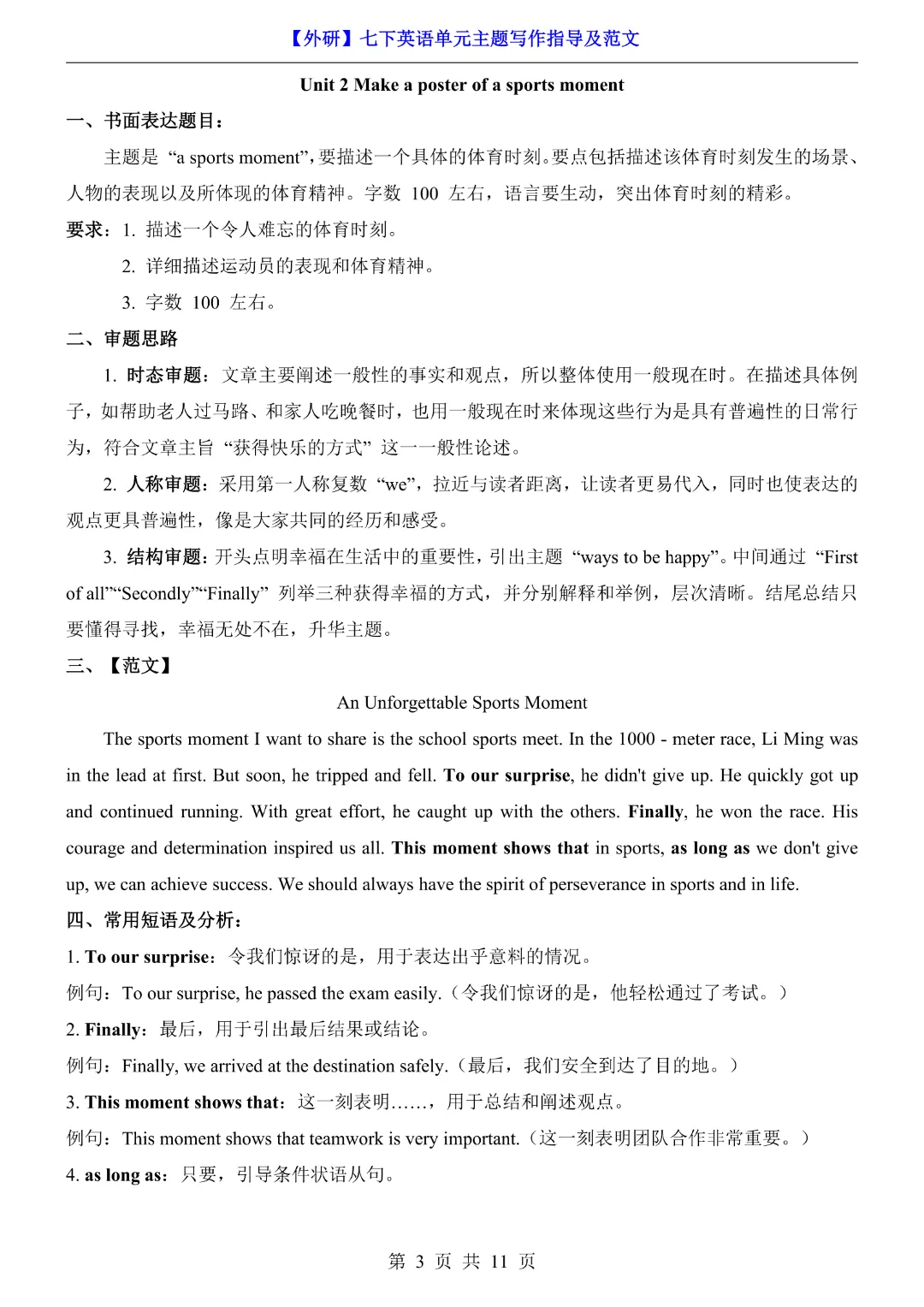七年级下册英语【外研版】单元主题写作指导及范文丨完整电子版可打印