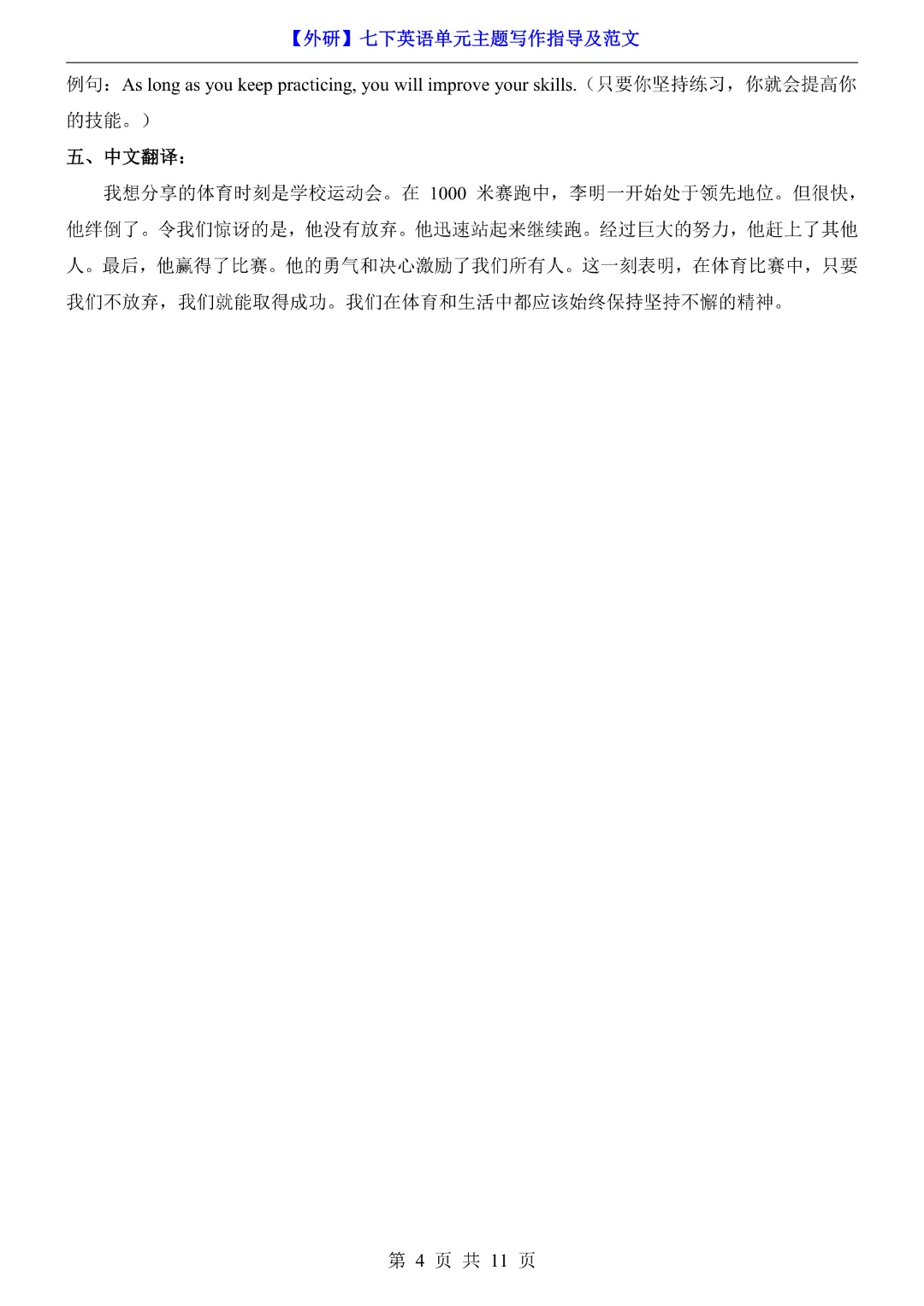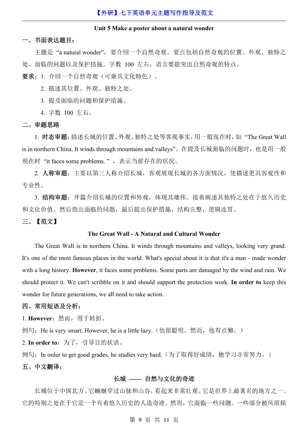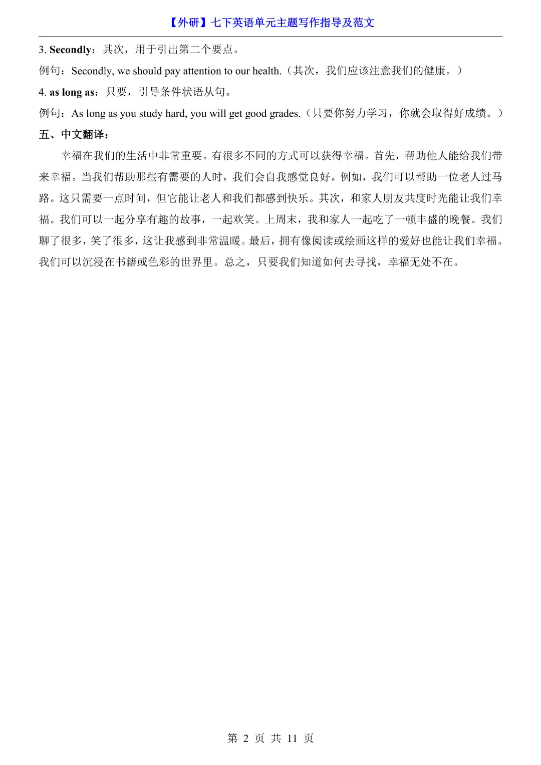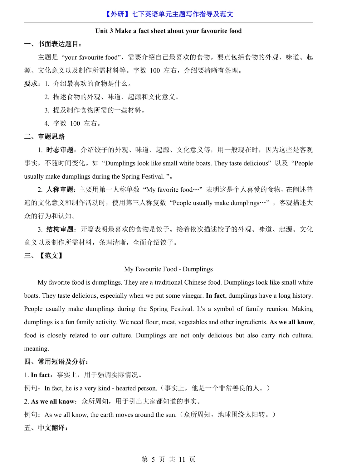 七年级下册英语【外研版】单元主题写作指导及范文丨完整电子版可打印