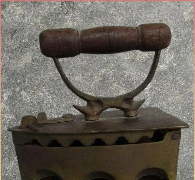 这把沉甸甸的叫老式烙铁,木把子握着不烫手,肚子里装炭火,前头是尖嘴好钻衣角,底部那排拱口是散热用的,过年出门的衣裳先得它伺候一遍,咝啦一放上去皱褶就服了气,妈妈说别着急推,顺着纹理来回抹两下更平,电熨斗方便是方便,总觉得少了点仪式感。