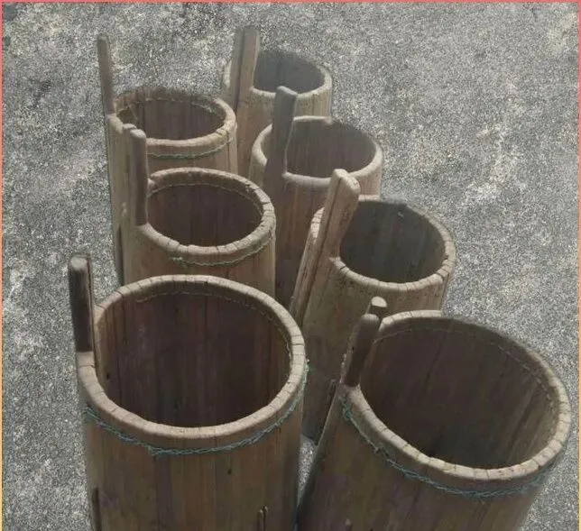 这两根竹棍中间用老藤缠得死紧,叫连体杠,挑水用的工具,一前一后挂上桶,肩窝把劲儿顶住,走土路一颠一颠的却不漏一滴,学会的人得把平衡拿捏住,新手上手总让水沿着桶沿打出去,村口打井那会儿,壮劳力一换气就接着挑,回家灶台上的锅马上就开了。