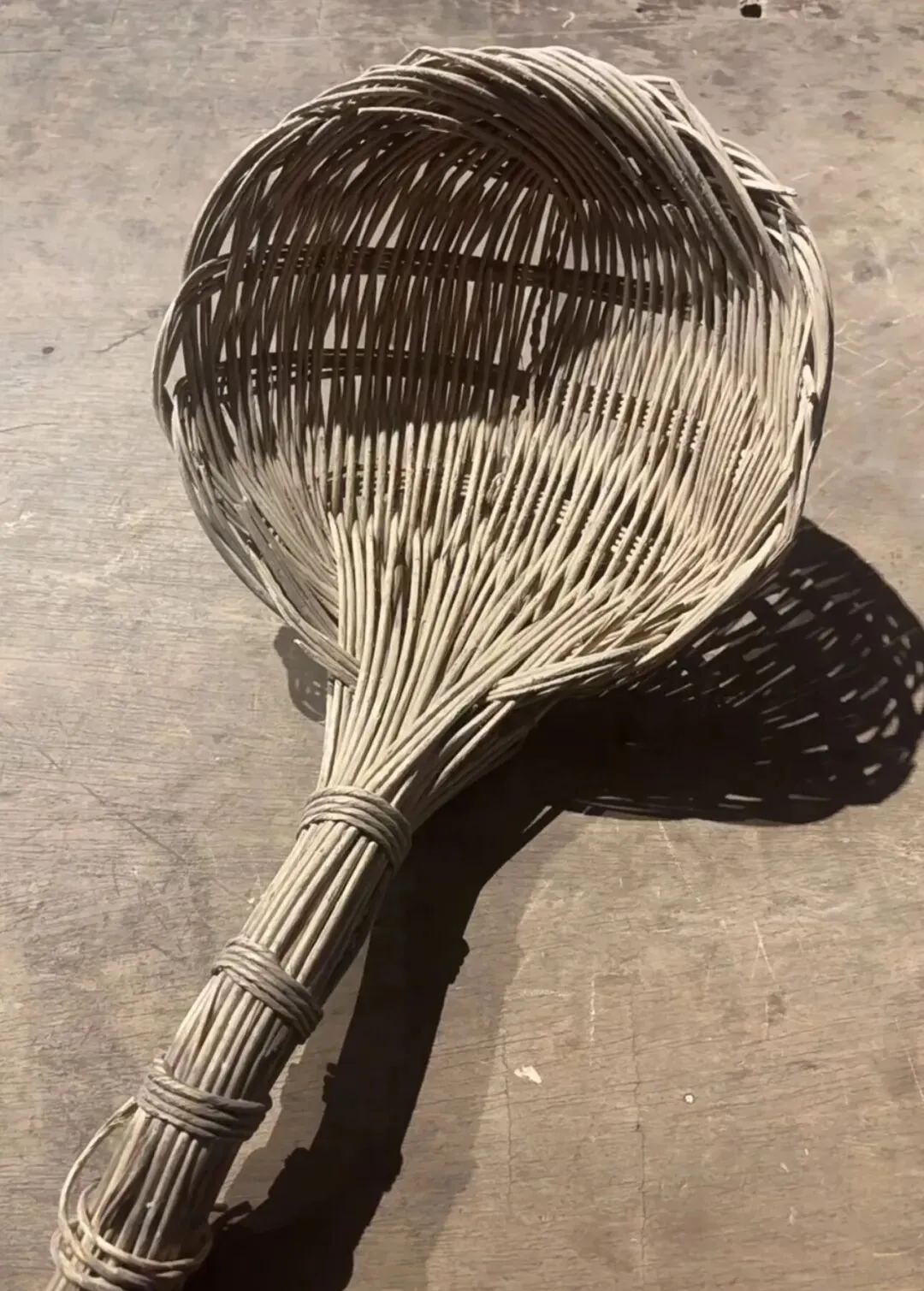 这个细条穿成的家伙叫竹编笊篱,院外屋墙上一挂就是半辈子,竹子扭成的圈,一根一根缠着,网眼密得能掂起一大锅饺子,煮面条的时候也少不了它,奶奶下完面总让我用它淘着捞,得慢点,饺子翻得太猛皮就破了,竹条越用越滑,小时候躲在锅台下等着捞第一个饺子入口,那味道到现在都忘不了,后来换成不锈钢的,竹编的慢慢没人买了,只有赶集时偶尔还能见着老人挑着卖。