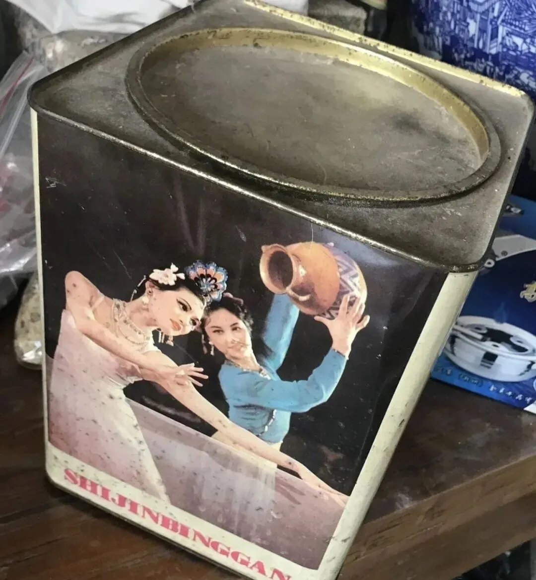 铁皮饼干盒,老一辈人嘴里都叫它“铁盒儿”,上头图案讲究,有大红花也有芭蕾姑娘,看着出挑,小孩就盼着开盖能有糖果饼干,吃空了舍不得扔,装针线的小玩意儿、野蘑菇种子全往里倒,小时候偷摸扒开盖子拿糖,被妈妈一眼瞅见,假装啥也没拿到嘴里,那种铁皮咣的一声脆响,是过年才有的新鲜劲儿,现在外面盛饼干的都是纸盒塑料,铁盒成稀罕货,老家柜顶说不定还搁着俩旧的。