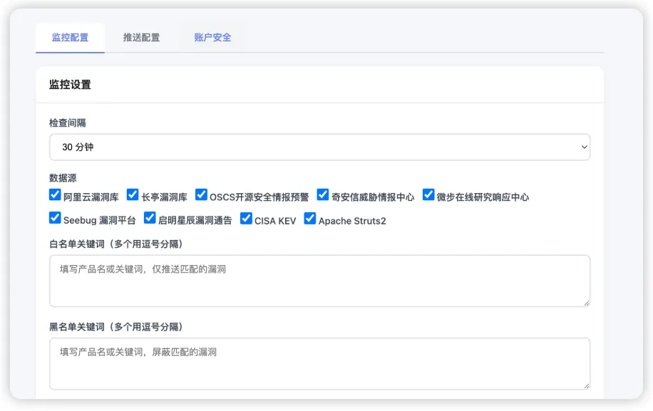 数据源选择:勾选需要监控的漏洞源