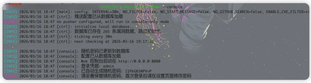 # 运行(默认监听 0.0.0.0:8080)./WatchVuln_Web-windows-amd64.exe --console