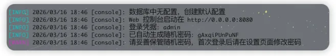 首次启动会生成随机登录密码,请注意查看日志。