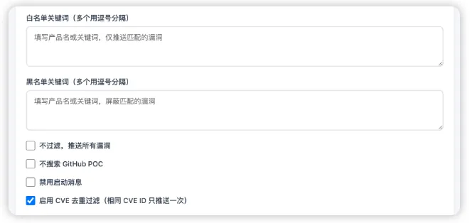 CVE 过滤:开启后多个源的同一 CVE 只推送一次
